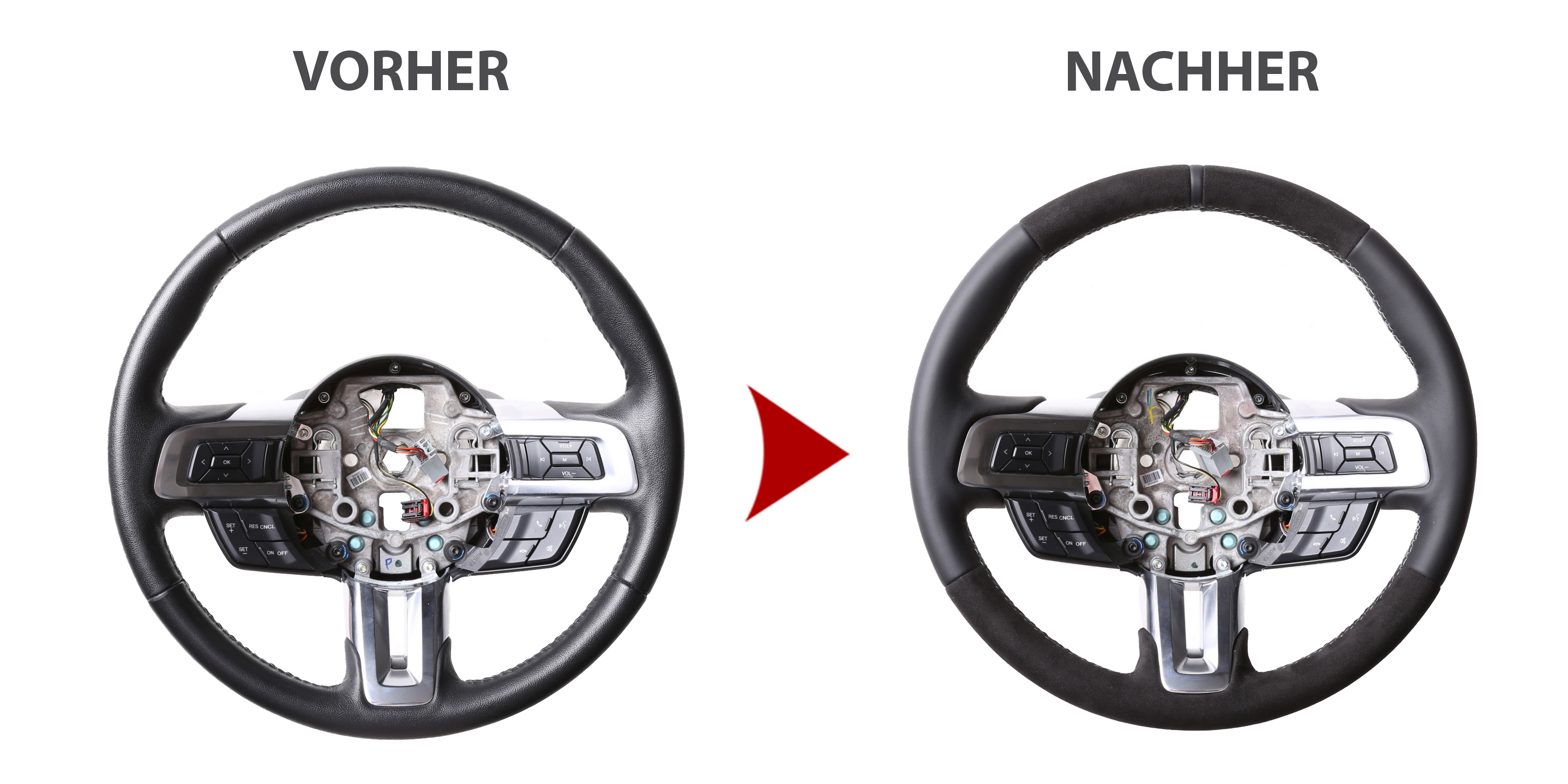 Der Austausch erfolgt ausschließlich gegen ein baugleiches Lenkradmodell. Alle Anbauteile wie Airbag, Multifunktionstasten, Blenden, Schaltwippen oder gar ein Spurhalteassistent übernehmen Sie problemlos von Ihrem Lenkrad. Diese sind nicht im Lieferumfang enthalten