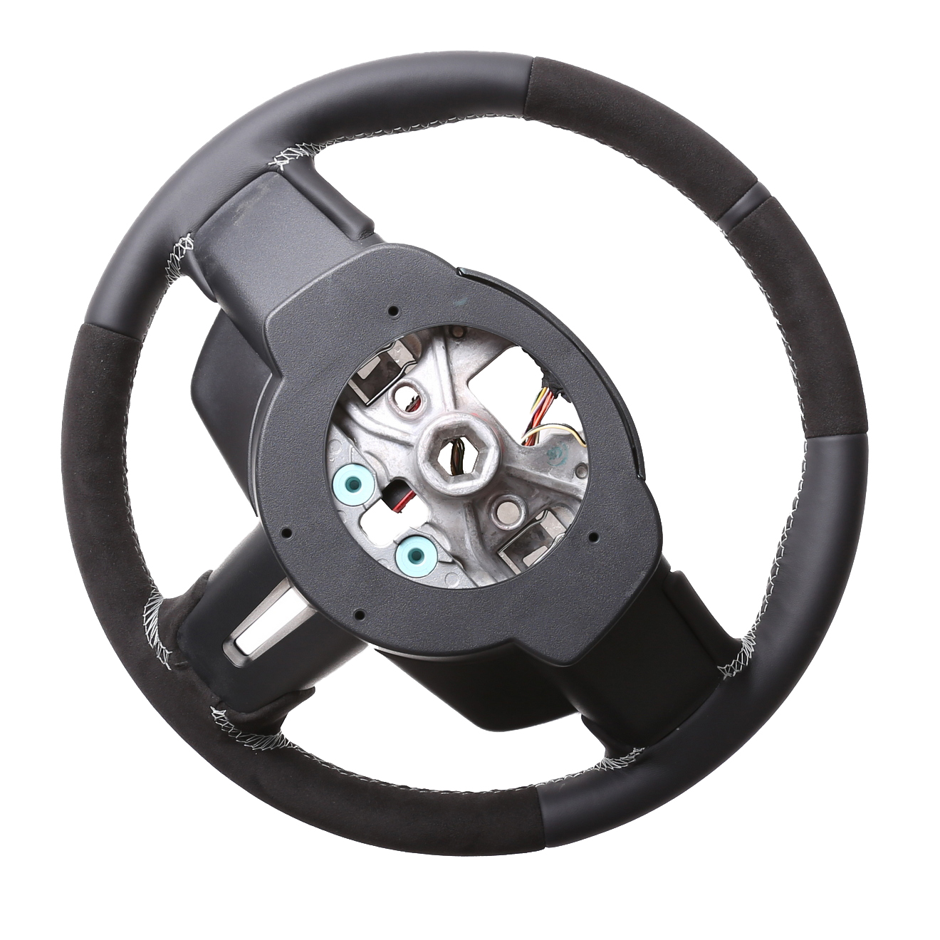 Originalfarbe schwarz, ein Kombibezug aus Alcantara und Nappa Leder, 12 Uhr Markierung schwarz, Naht silber