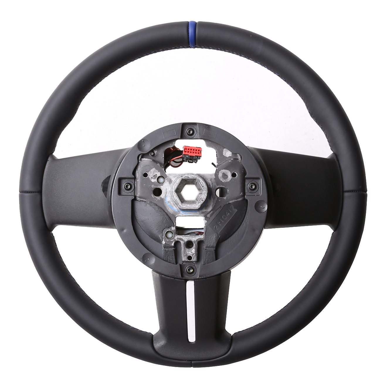 Originalfarbe schwarz, ein Bezug aus Nappa Leder, 12 Uhr Markierung blau, Naht blau