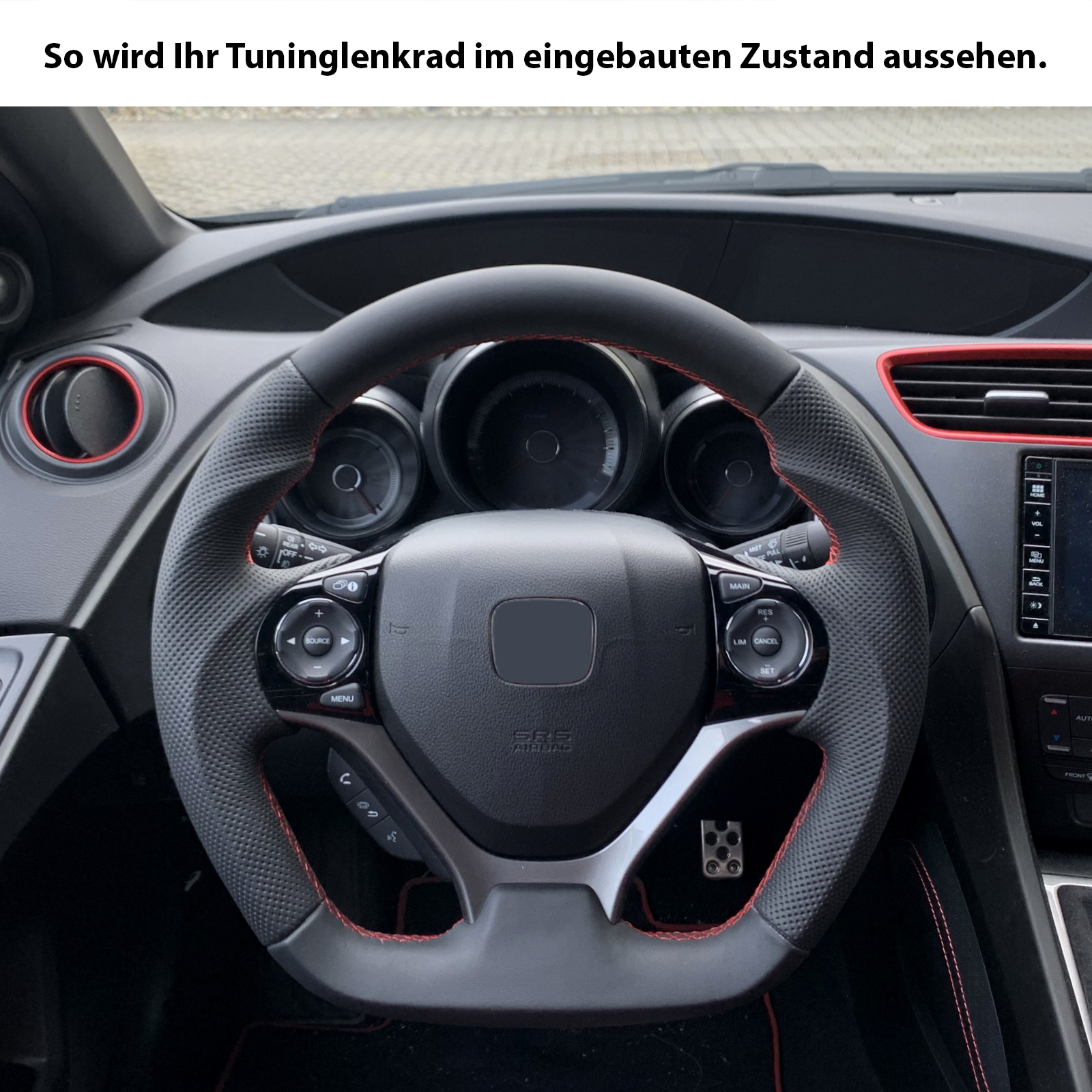Produktinformationen "Honda Lenkrad Civic Type R Kombibezug Abgeflacht Naht rot"
