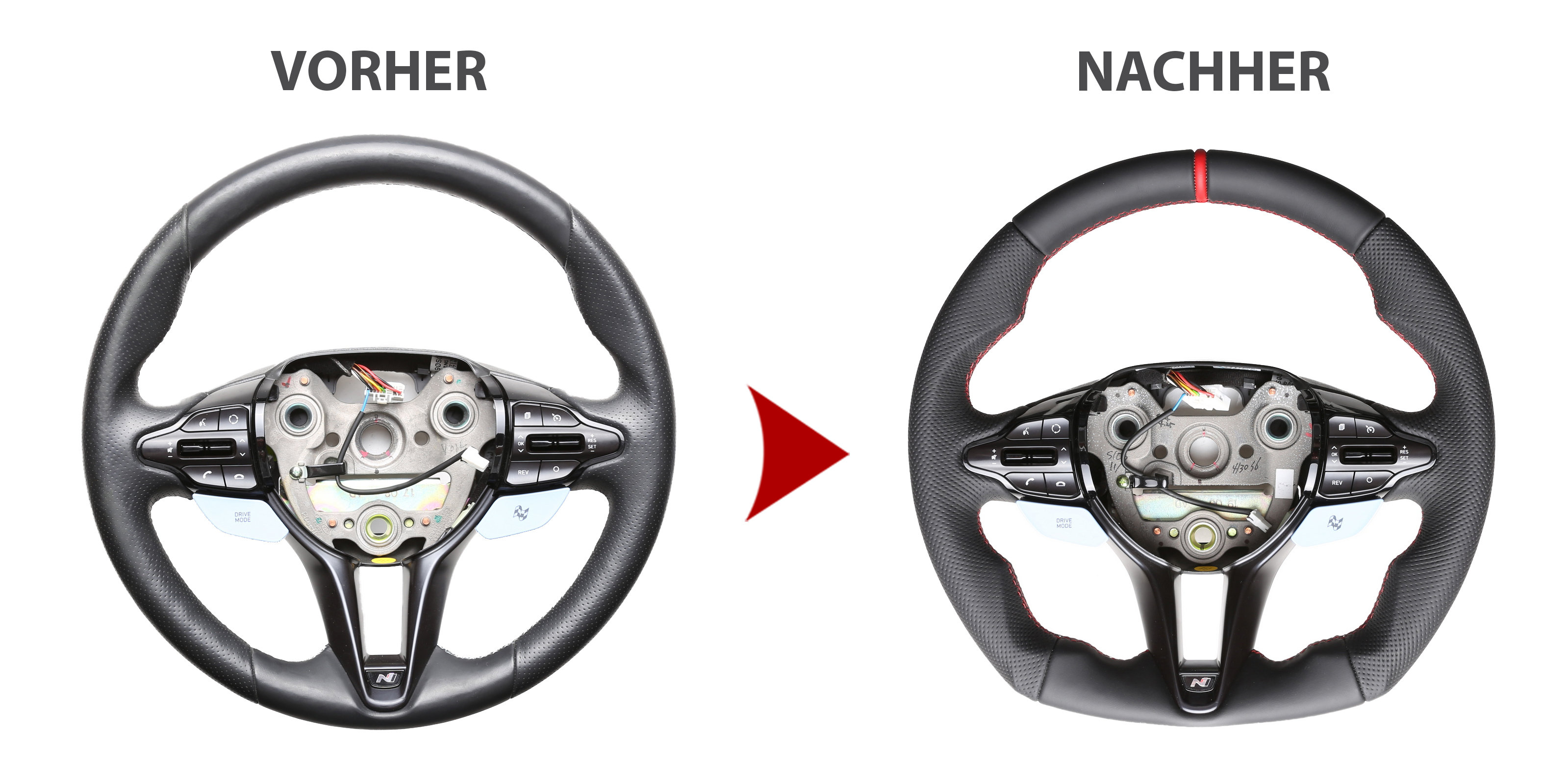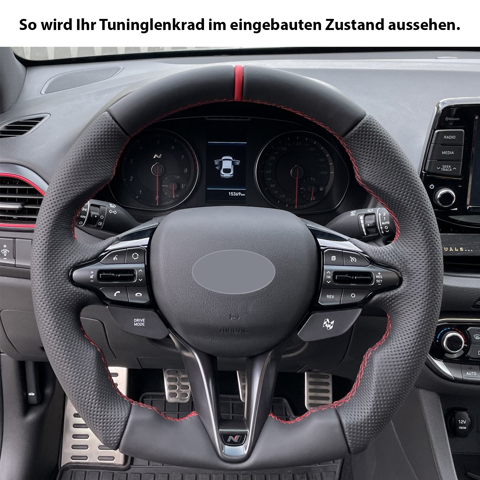 Hyundai Lenkrad i30N Kona Abgeflacht NEU Kombibezug 12 Uhr Markierung rot Naht rot