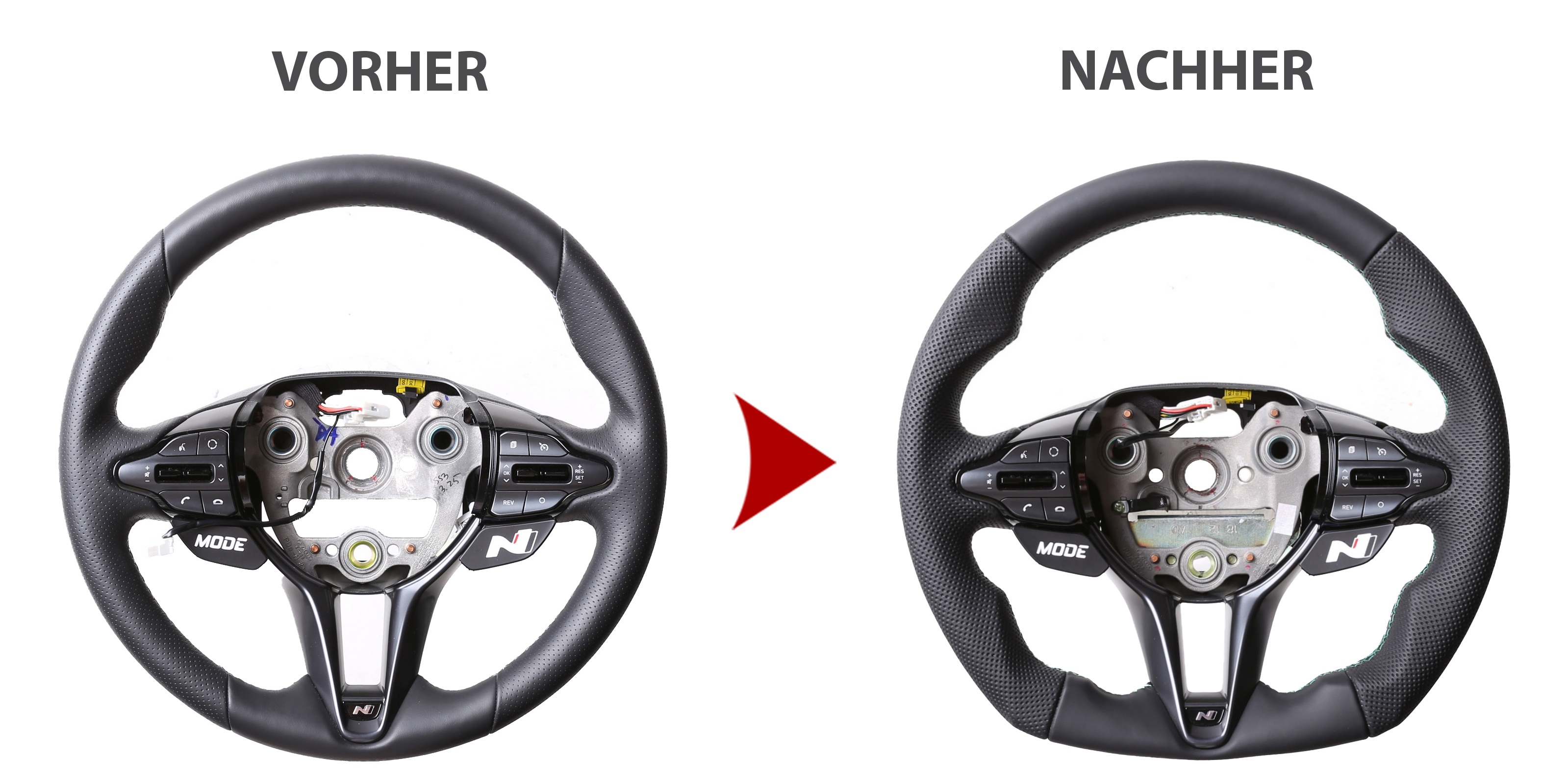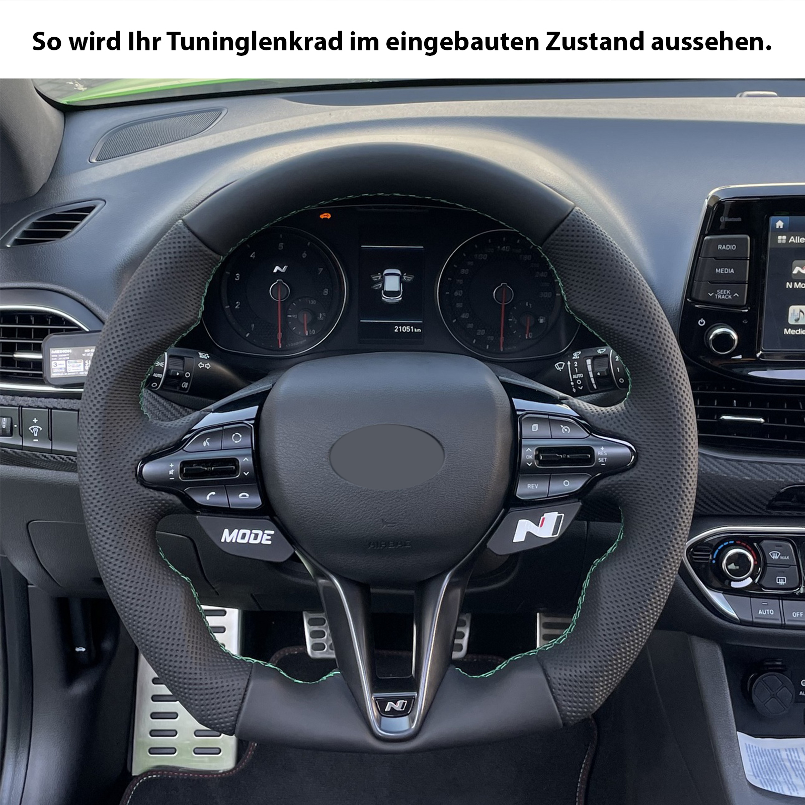 Produktinformationen "Hyundai Lenkrad i30N Kona Abgeflacht NEU Kombibezug Naht grün"