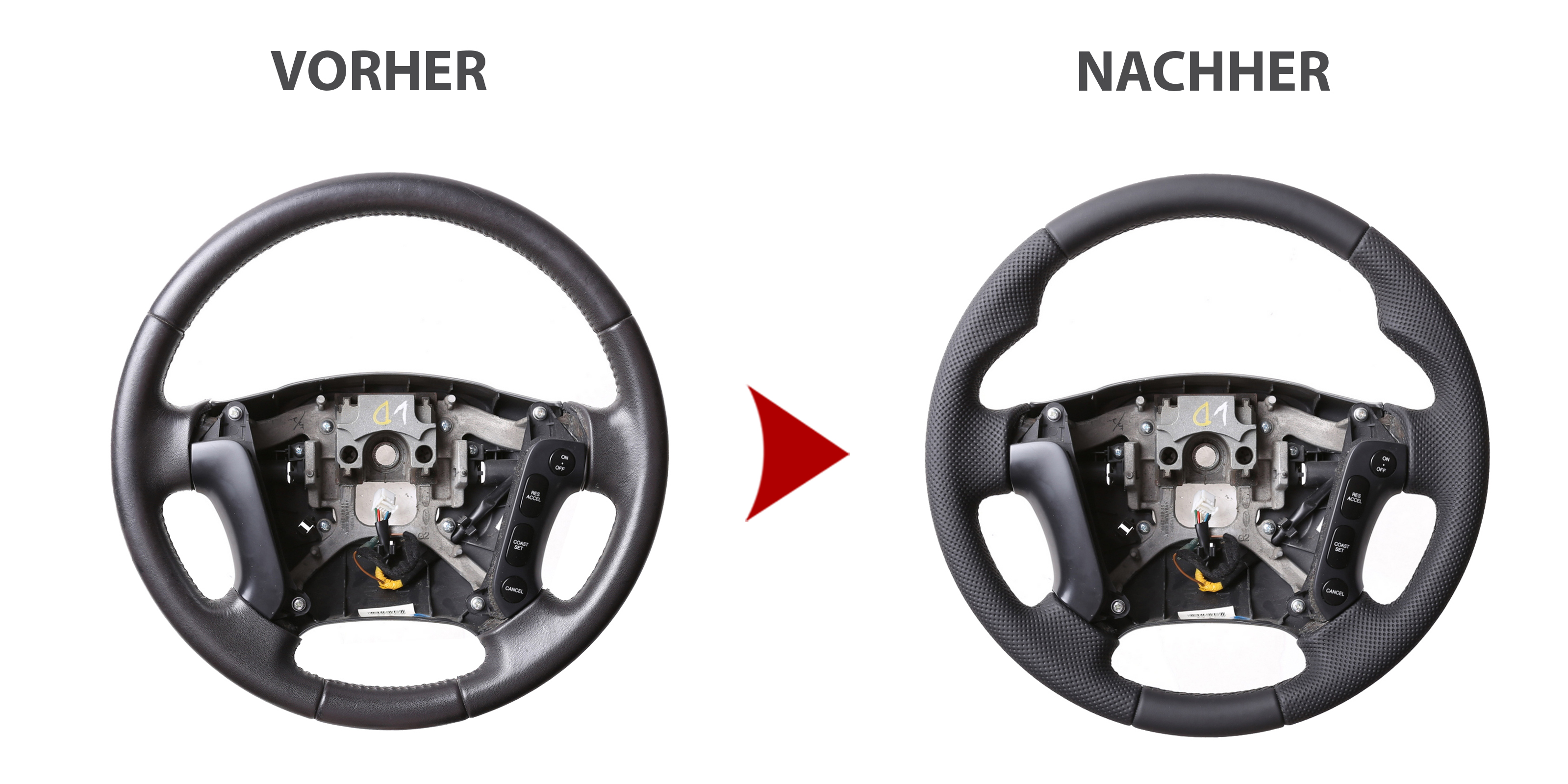 Der Austausch erfolgt ausschließlich gegen ein baugleiches Lenkradmodell. Alle Anbauteile wie Airbag, Multifunktionstasten, Blenden, Schaltwippen oder gar ein Spurhalteassistent übernehmen Sie problemlos von Ihrem Lenkrad. Diese sind nicht im Lieferumfang enthalten.