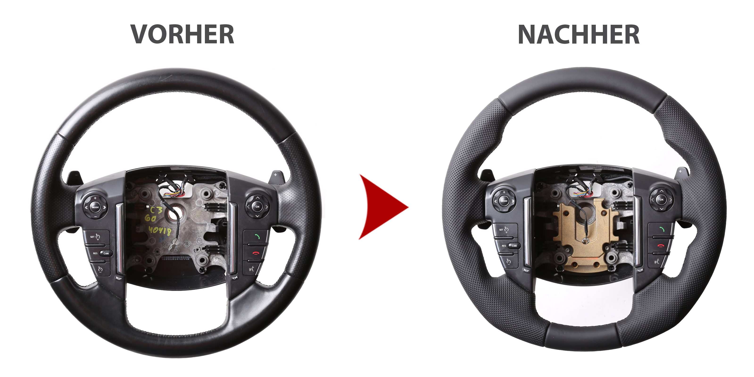 Der Austausch erfolgt ausschließlich gegen ein baugleiches Lenkradmodell. Alle Anbauteile wie Airbag, Multifunktionstasten, Blenden, Schaltwippen oder gar ein Spurhalteassistent übernehmen Sie problemlos von Ihrem Lenkrad. Diese sind nicht im Lieferumfang enthalten.