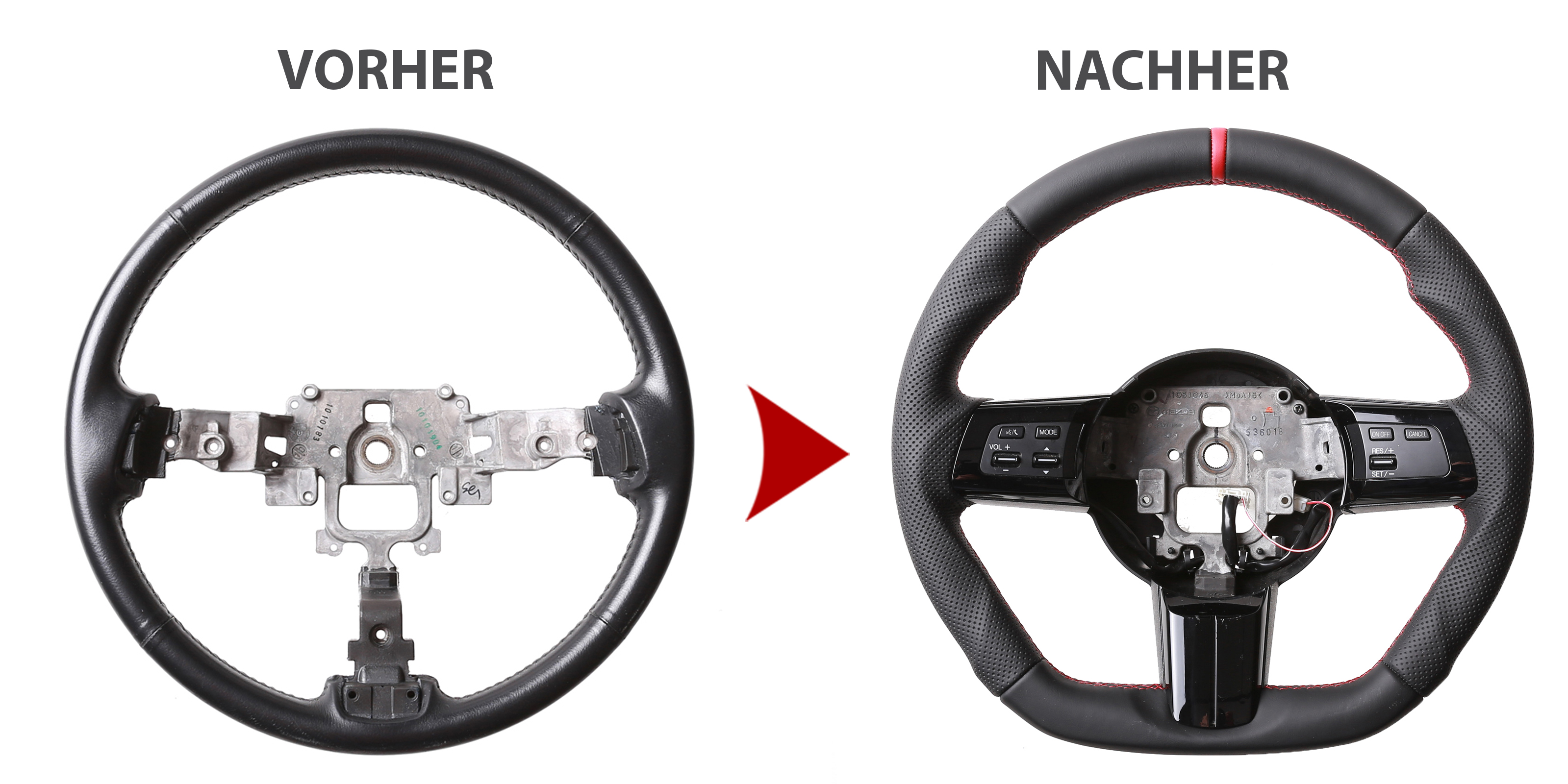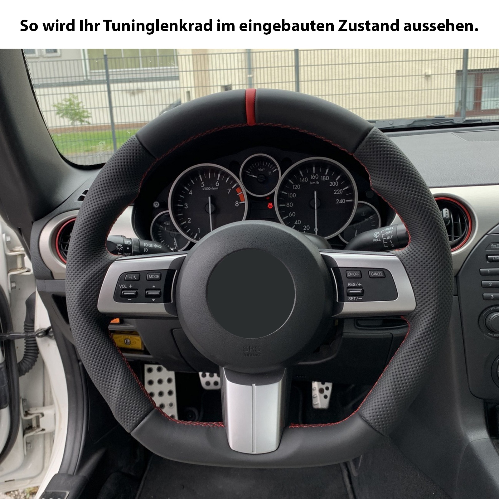 Mazda Lenkrad MX 5 Abgeflacht 12Uhr Markirung rot Kombibezug Naht rot