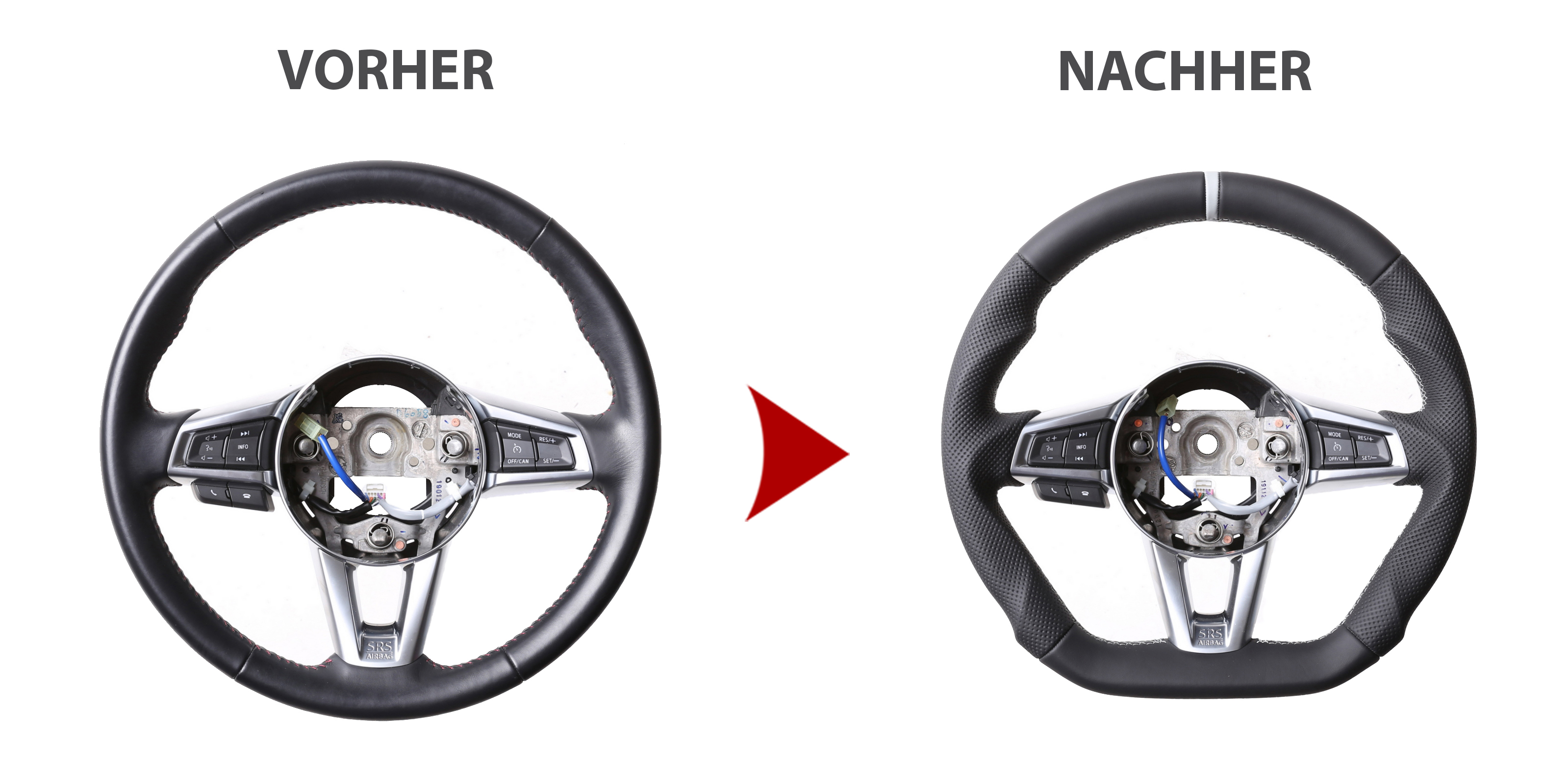 Abgeflachtes Tuninglenkrad mit ergonomischen Griffen für maximale Kontrolle. Griffumfang dicker als das Original Lenkrad