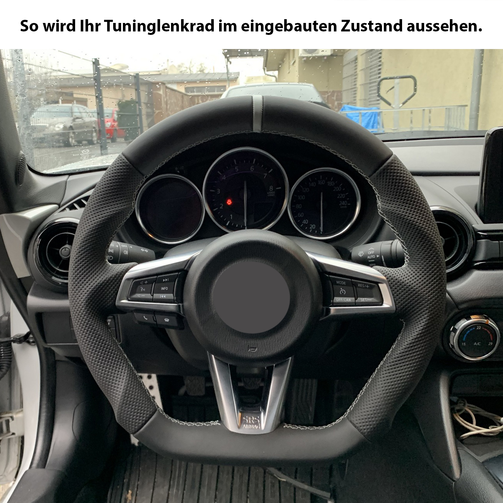 Mazda Lenkrad MX 5 Abgeflacht Kombibezug 12Uhr Markierung silber Naht silber