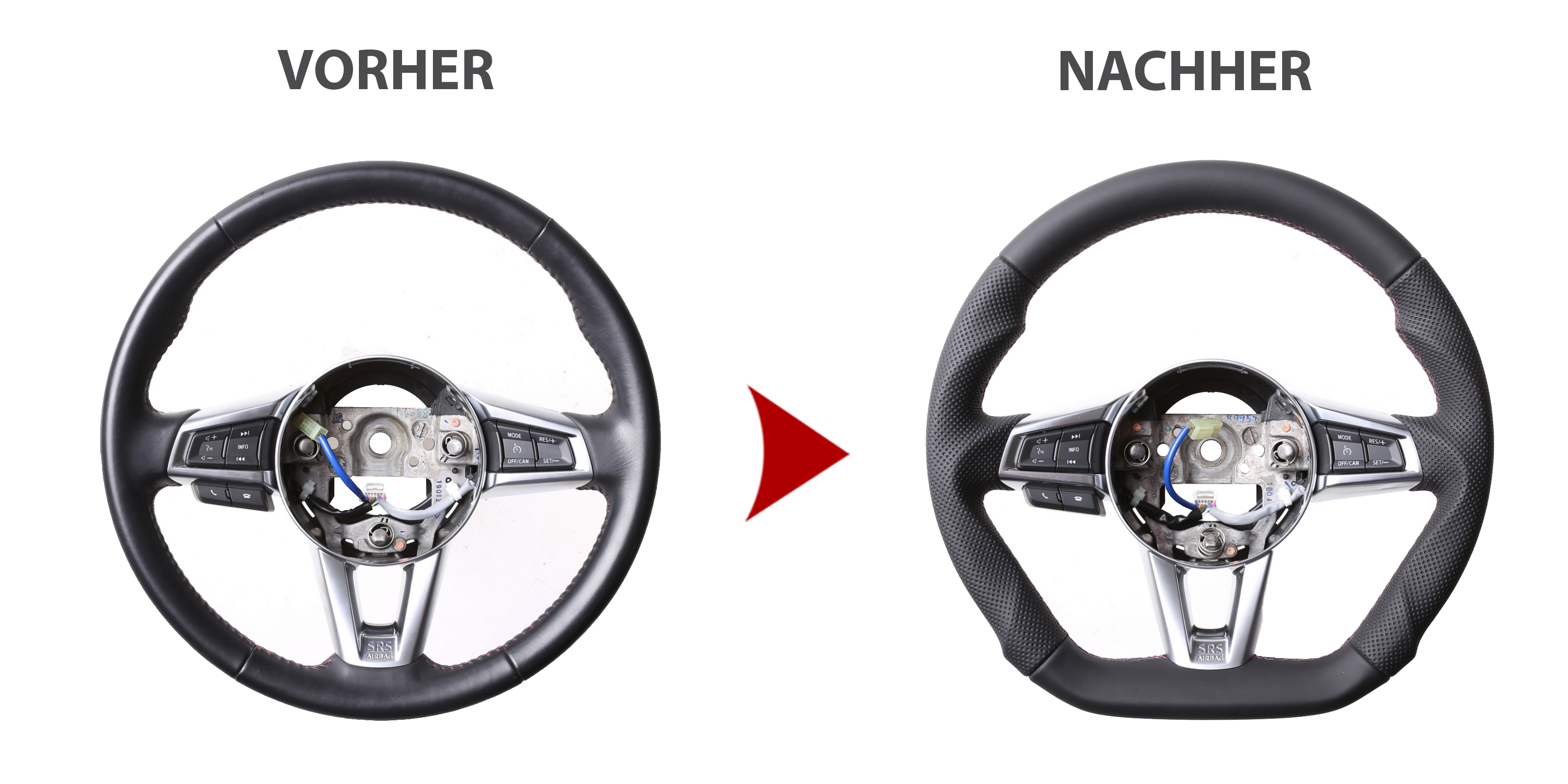 Abgeflachtes Tuninglenkrad mit ergonomischen Griffen für maximale Kontrolle. Griffumfang dicker als das Original Lenkrad