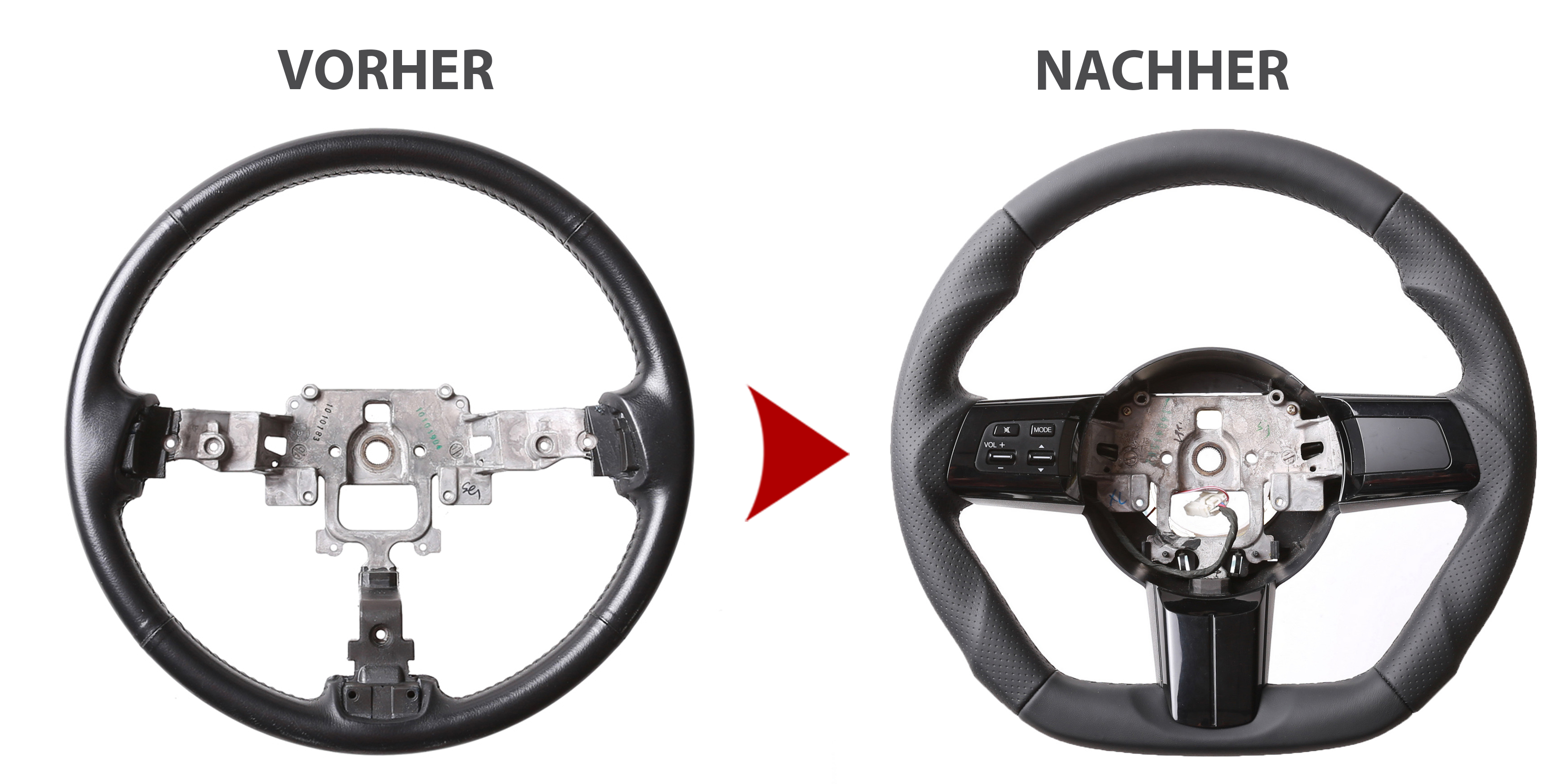Der Austausch erfolgt ausschließlich gegen ein baugleiches Lenkradmodell. Alle Anbauteile wie Airbag, Multifunktionstasten, Blenden, Schaltwippen oder gar ein Spurhalteassistent übernehmen Sie problemlos von Ihrem Lenkrad. Diese sind nicht im Lieferumfang enthalten.