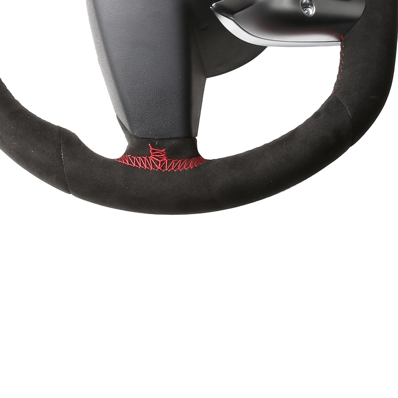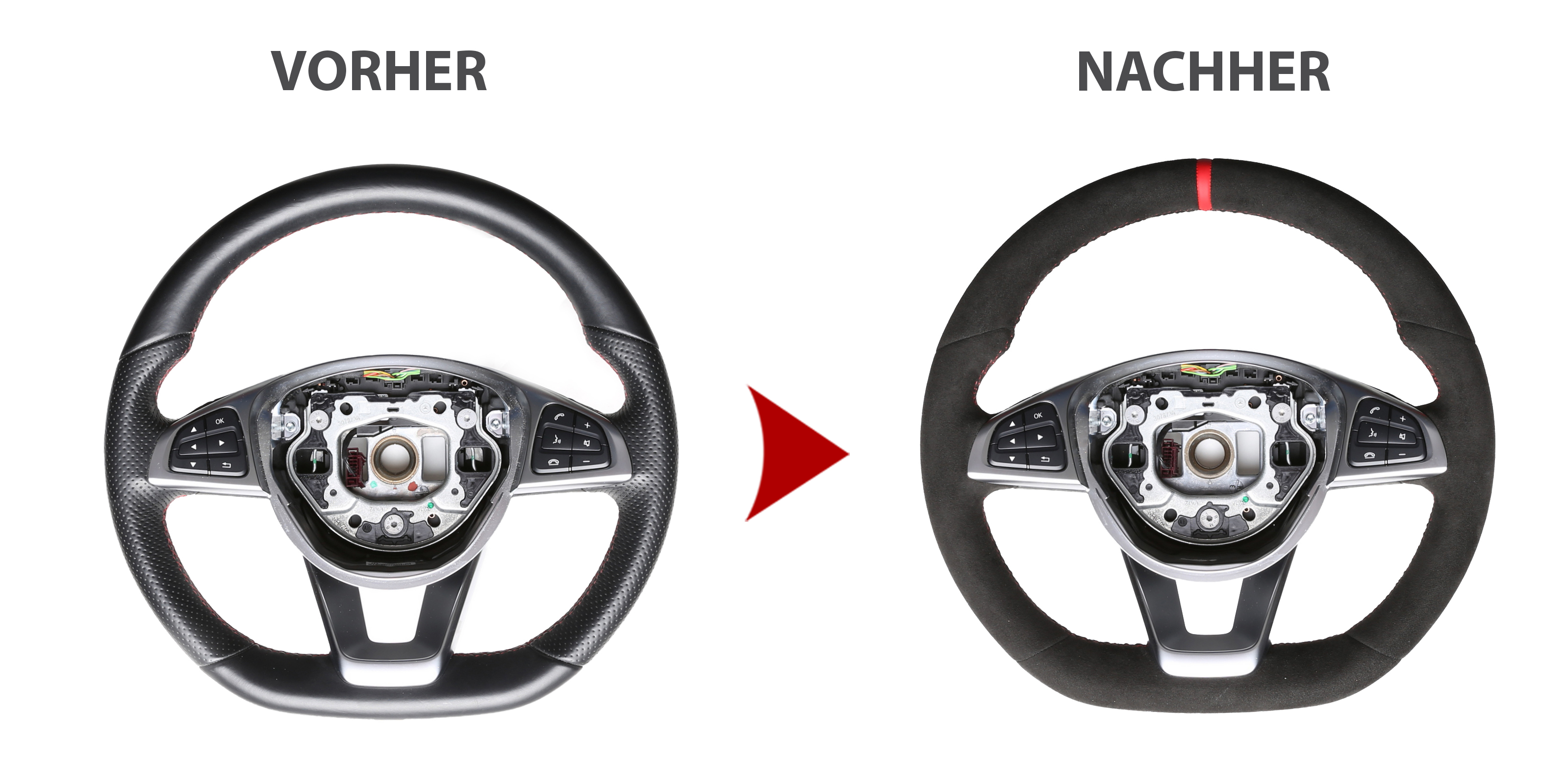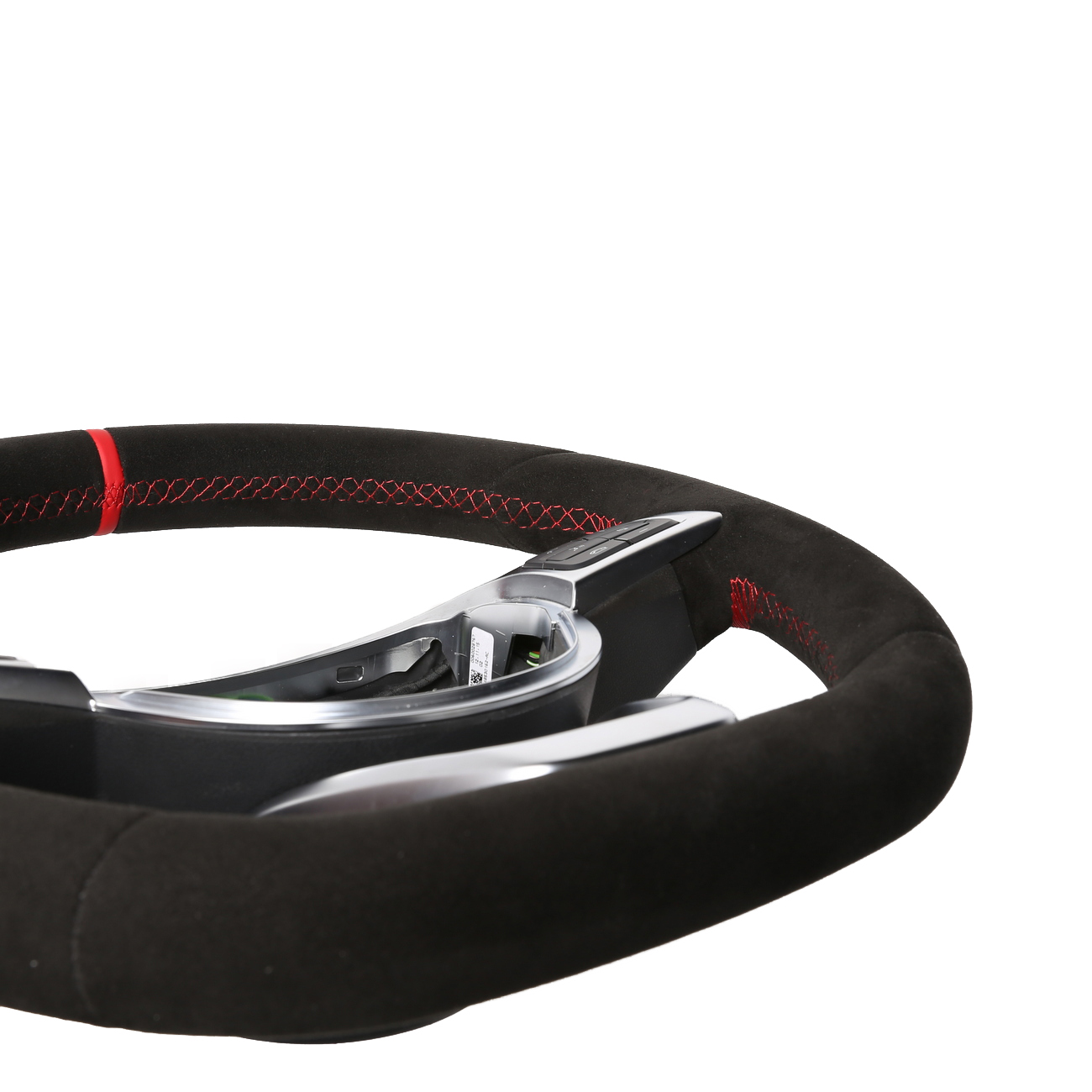 Originalfarbe schwarz, ein Bezug aus Alcantara Leder, 12 Uhr Markierung rot , Naht rot