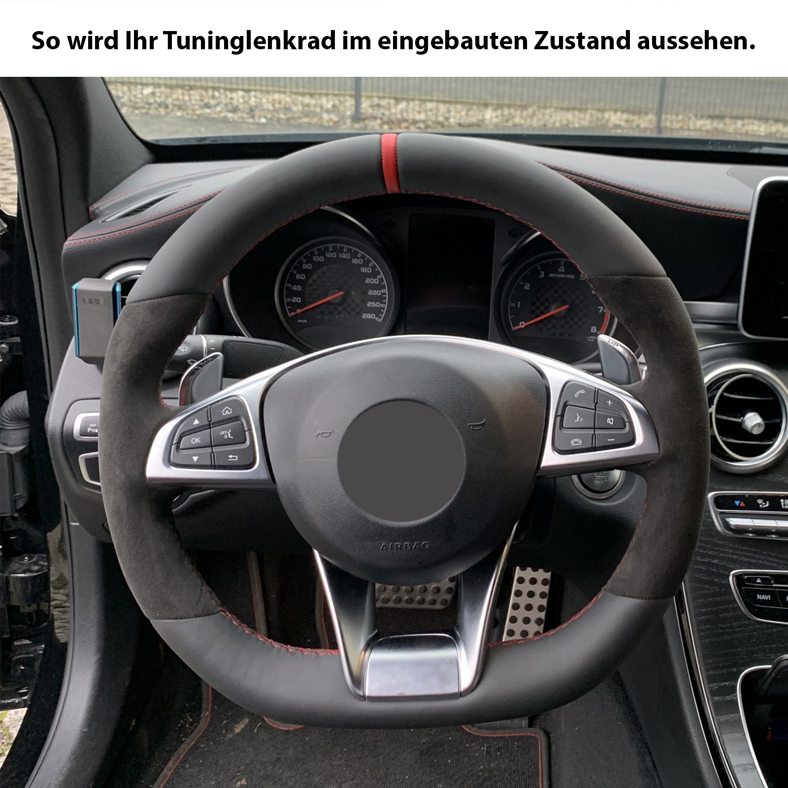 Produktinformationen "Mercedes Lenkrad A CLA GLA GLS Klasse W176 W117 X156 X166 Kombibezug Alcantara 12 Uhr Markierung rot"