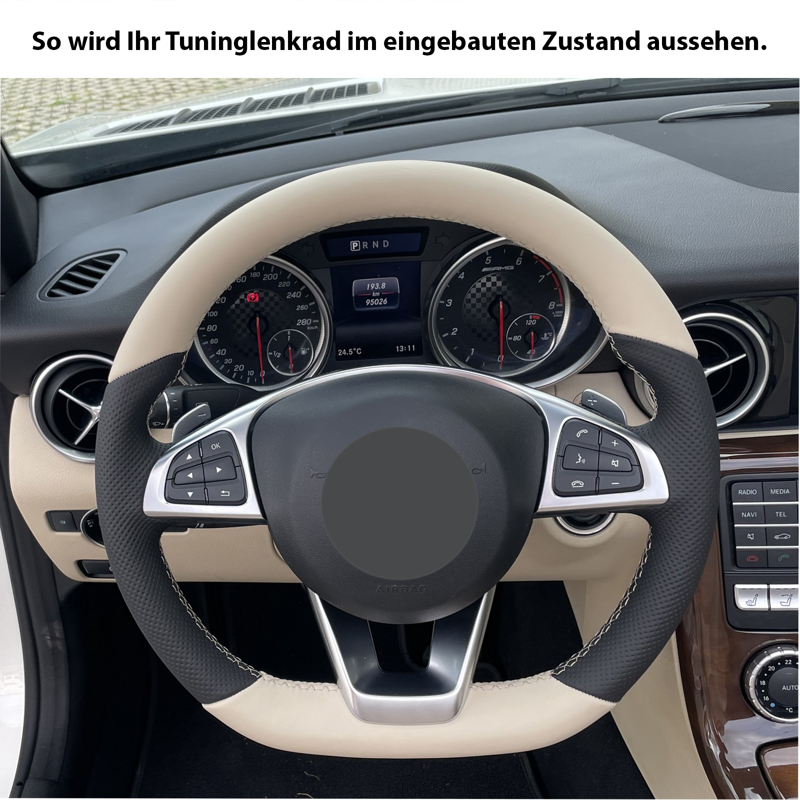 Produktinformationen "Mercedes Lenkrad A CLA GLA GLS Klasse W176 W117 X156 X166 Kombibezug Bicolor beige Naht beige"