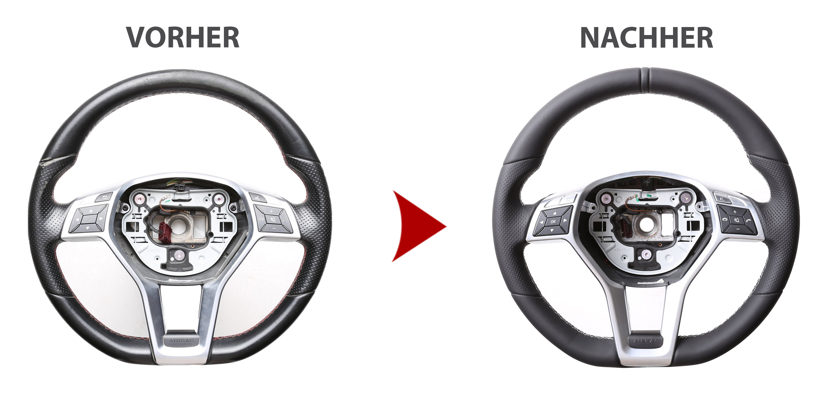 Der Austausch erfolgt ausschließlich gegen ein baugleiches Lenkradmodell. Alle Anbauteile wie Airbag, Multifunktionstasten, Blenden, Schaltwippen oder gar ein Spurhalteassistent übernehmen Sie problemlos von Ihrem Lenkrad. Diese sind nicht im Lieferumfang enthalten.