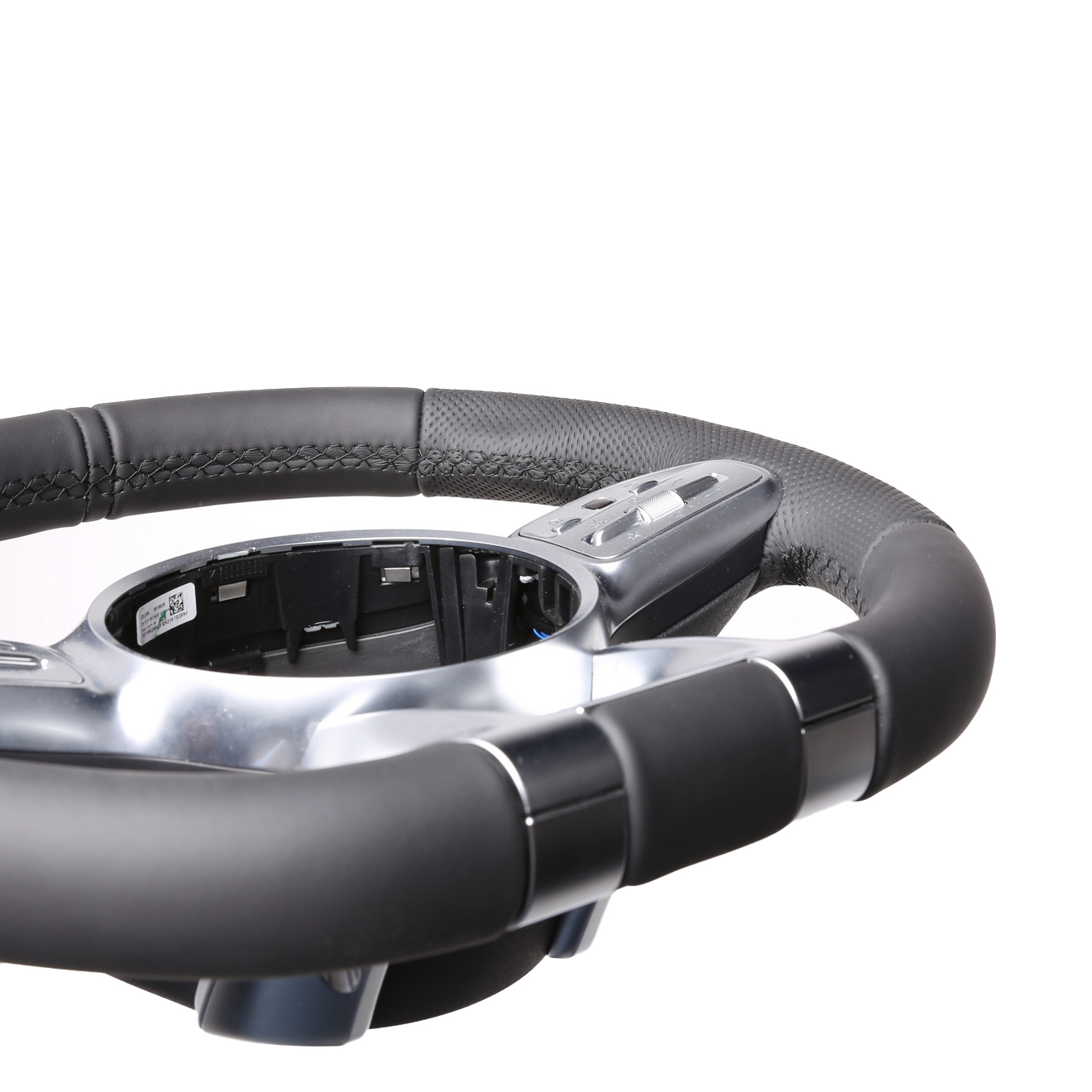 Originalfarbe schwarz, ein Kombibezug aus Mercedes Nappa und perforiertem Leder, 12 Uhr Markierung, Naht schwarz