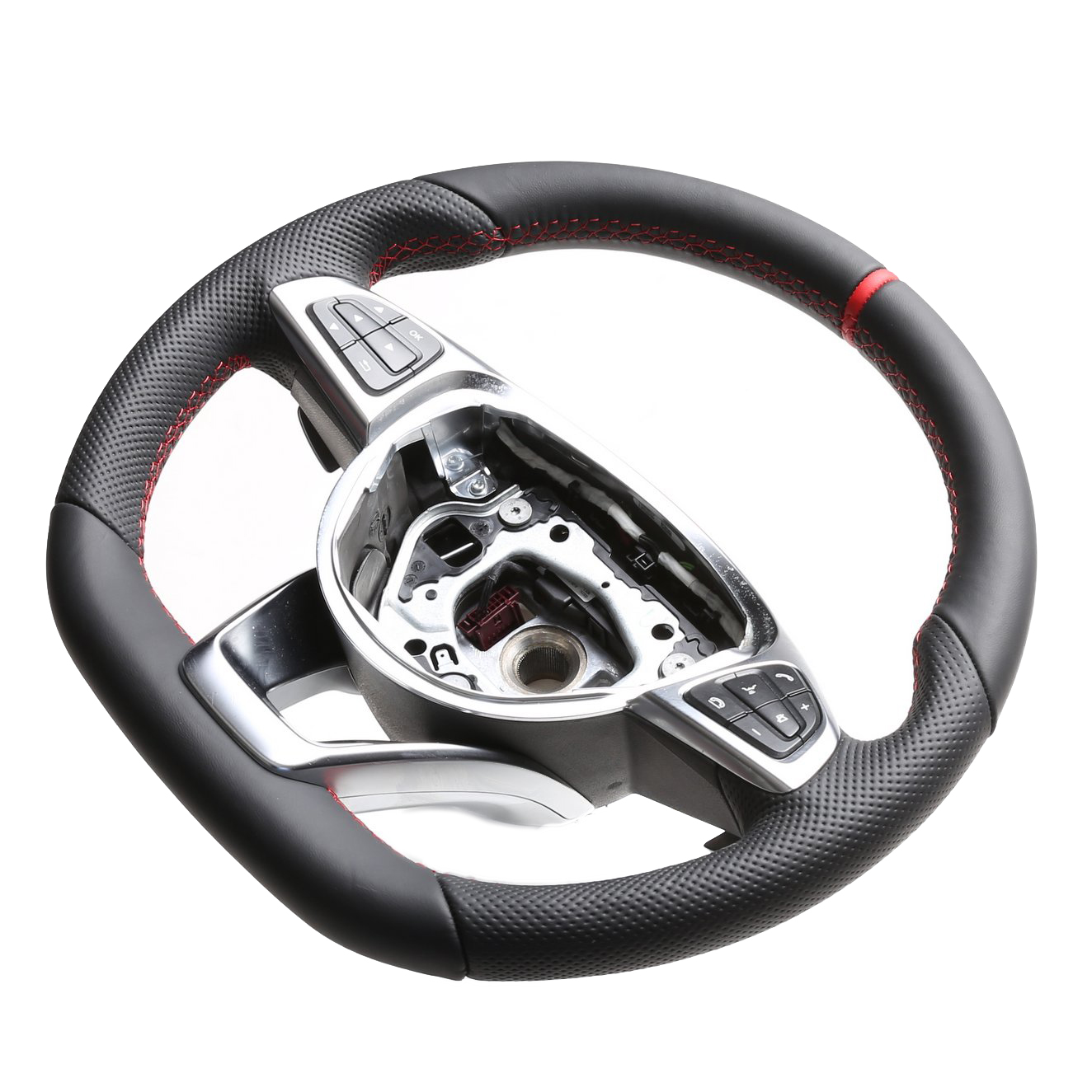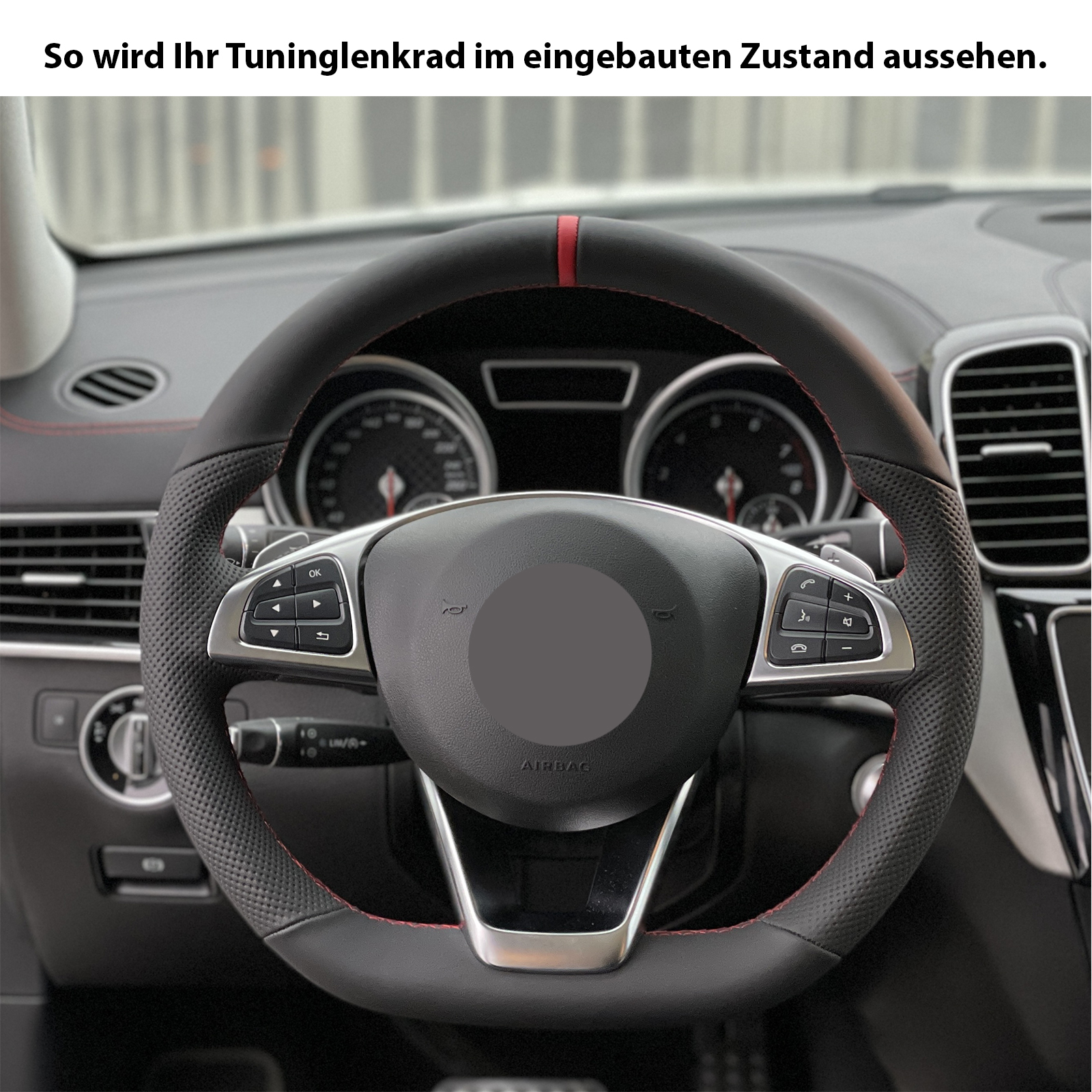 Produktinformationen "Mercedes Lenkrad B CLS GLC SLK Klasse W246 C218 X253 R172 Kombibezug 12 Uhr Markierung rot Naht rot"