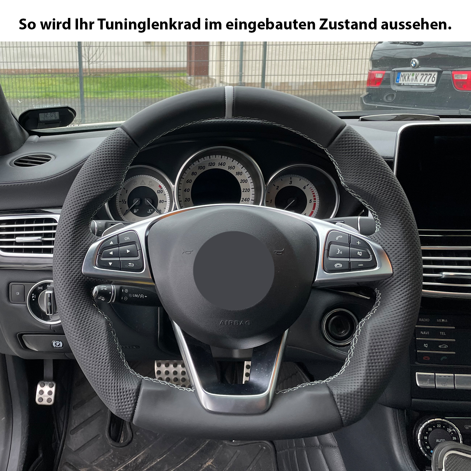 Produktinformationen "Mercedes Lenkrad B CLS GLC SLK Klasse W246 C218 X253 R172 Kombibezug 12 Uhr Markierung silber"