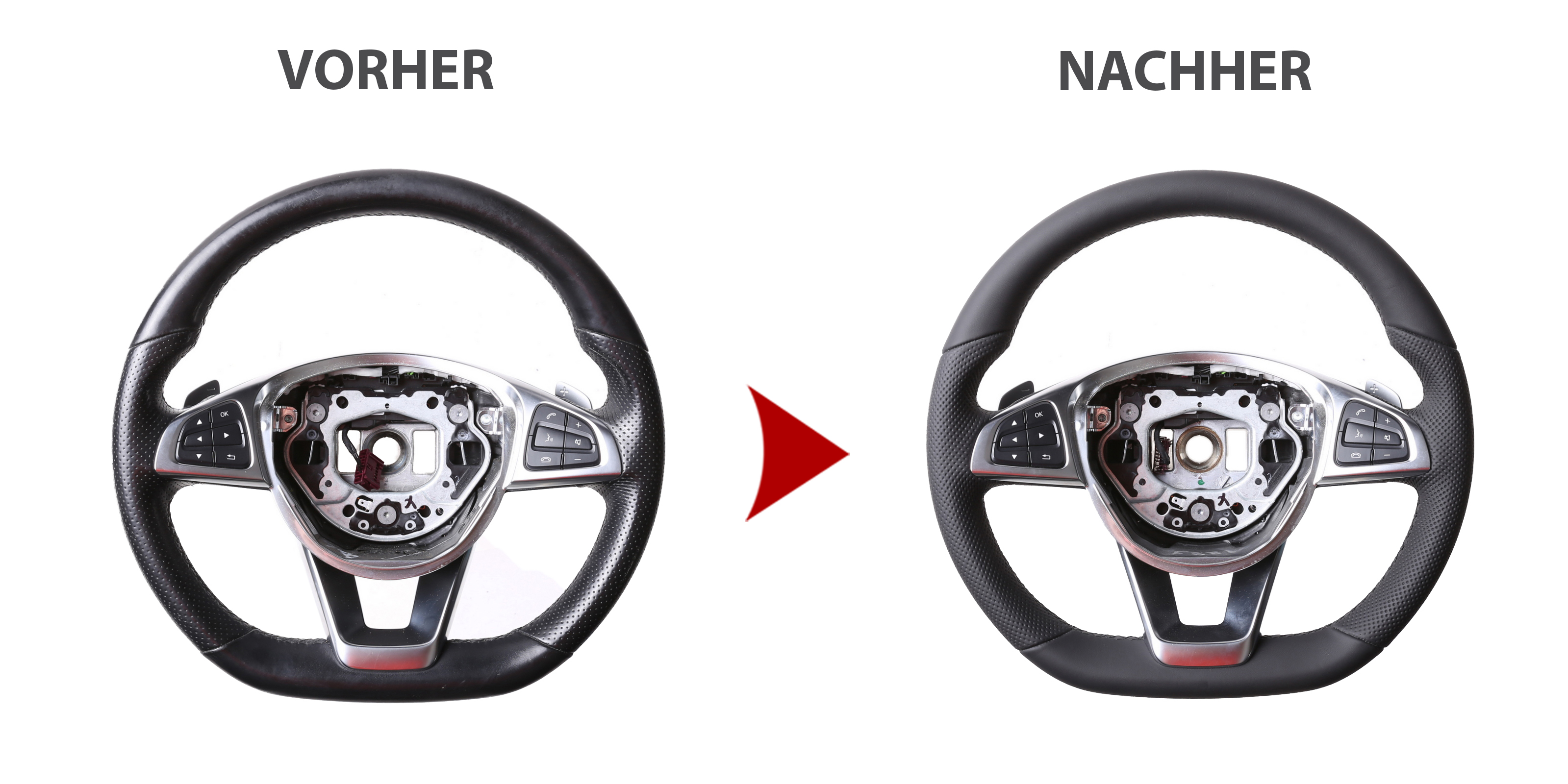Der Austausch erfolgt ausschließlich gegen ein baugleiches Lenkradmodell. Alle Anbauteile wie Airbag, Multifunktionstasten, Blenden, Schaltwippen oder gar ein Spurhalteassistent übernehmen Sie problemlos von Ihrem Lenkrad. Diese sind nicht im Lieferumfang enthalten.