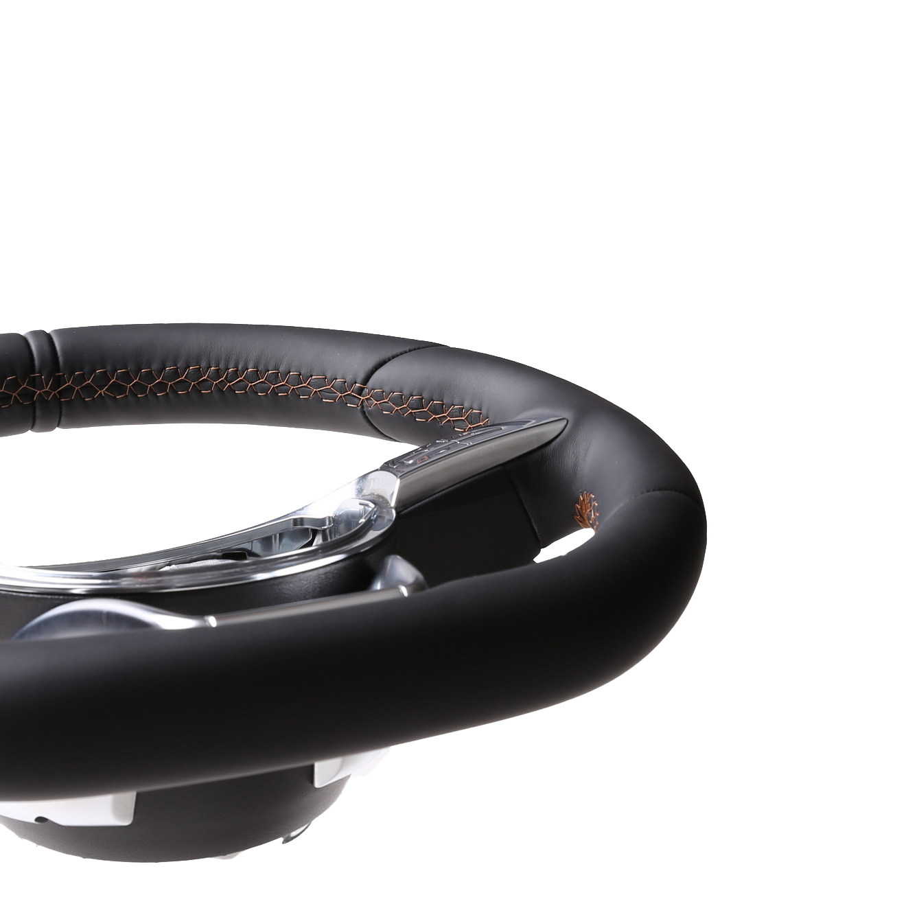 Originalfarbe schwarz, ein Bezug aus Mercedes Nappa Leder, 12 Uhr Markierung, Naht braun
