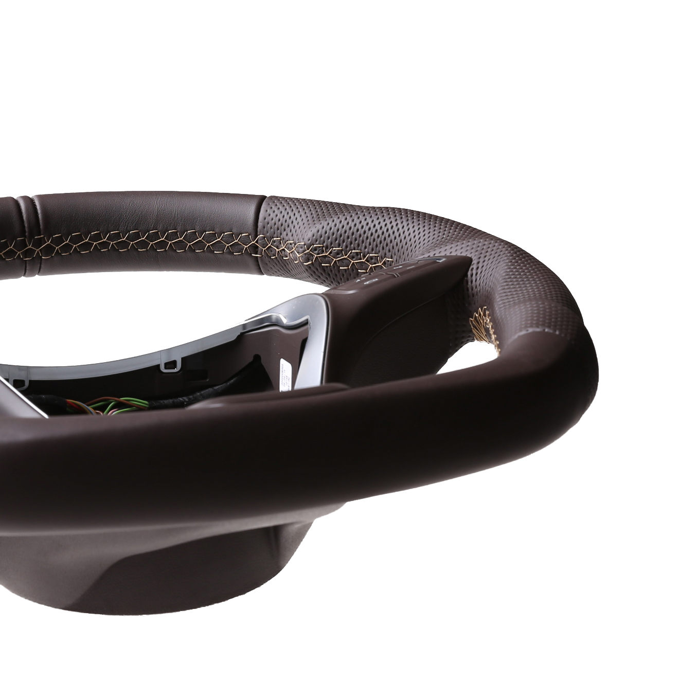 Originalfarbe braun, ein Kombibezug aus Mercedes Nappa und perforiertem Leder, 12 Uhr Markierung braun, Naht braun