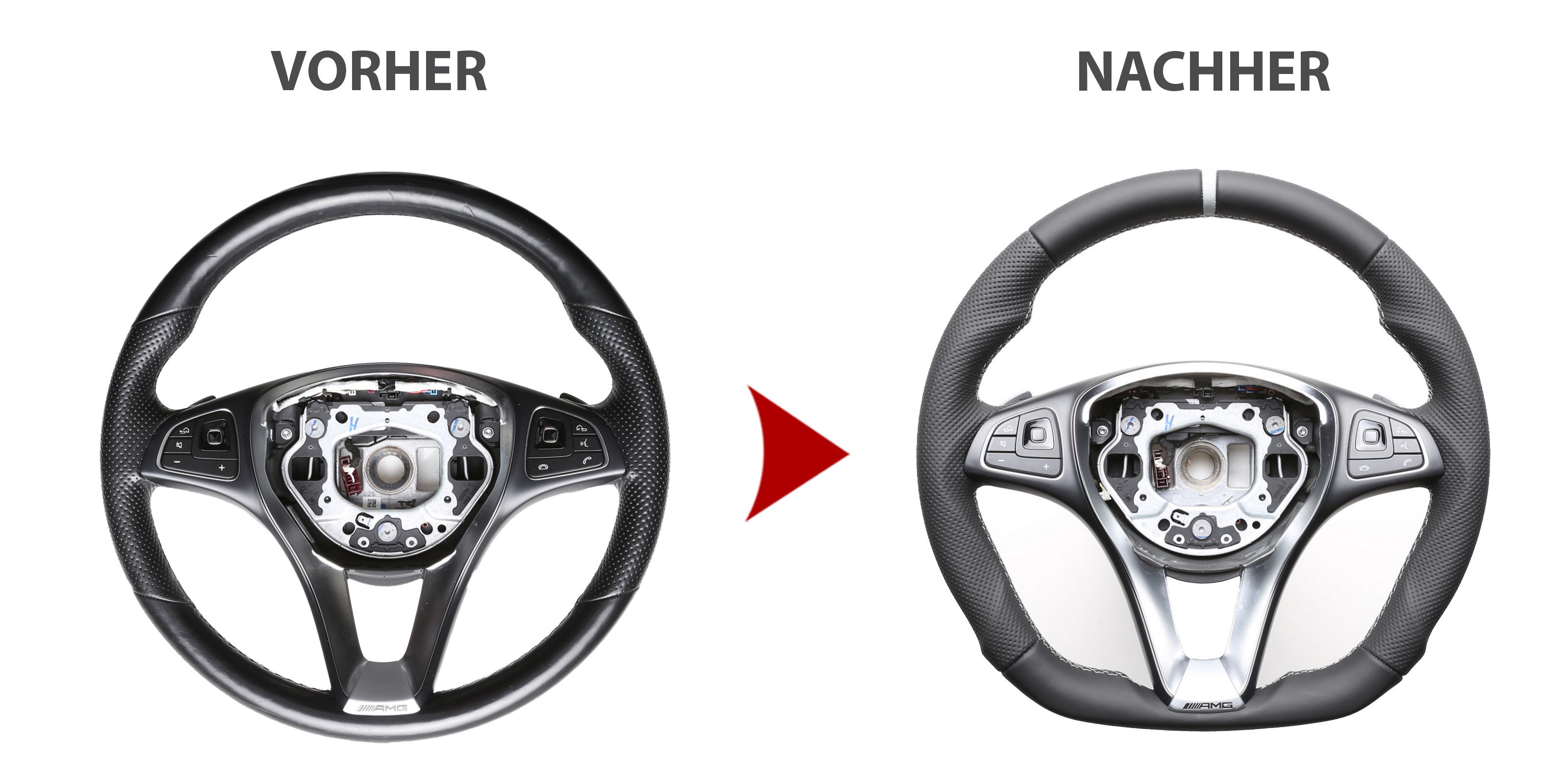 Wir stellen Ihnen aber gerne ein Leihlenkrad zur Verfügung und beziehen Ihr eigenes Lenkrad nach Ihrem Wunsch neu.