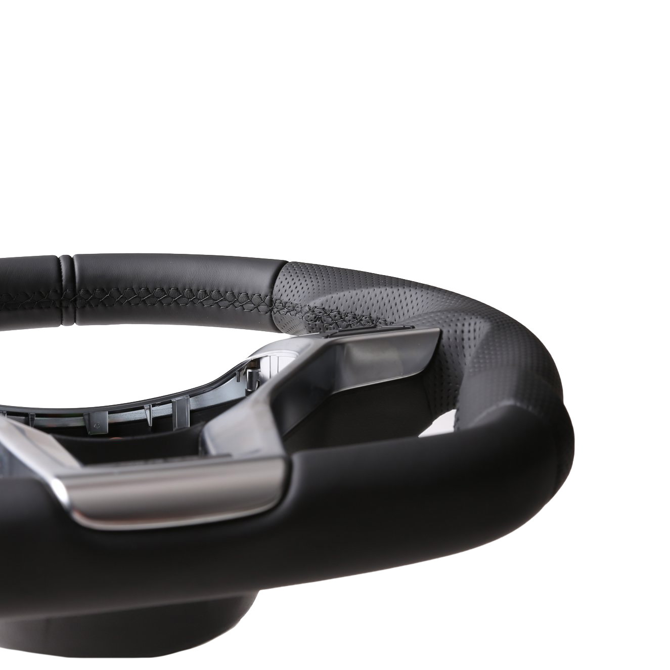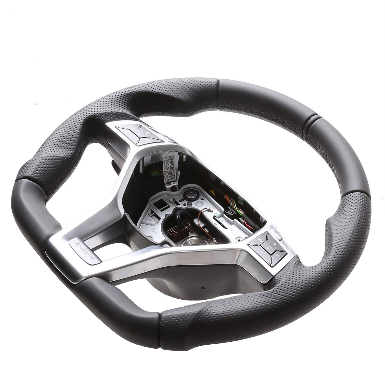 Originalfarbe schwarz, ein Kombibezug aus Mercedes Nappa und perforiertem Leder, 12 Uhr Markierung schwarz , Naht schwarz