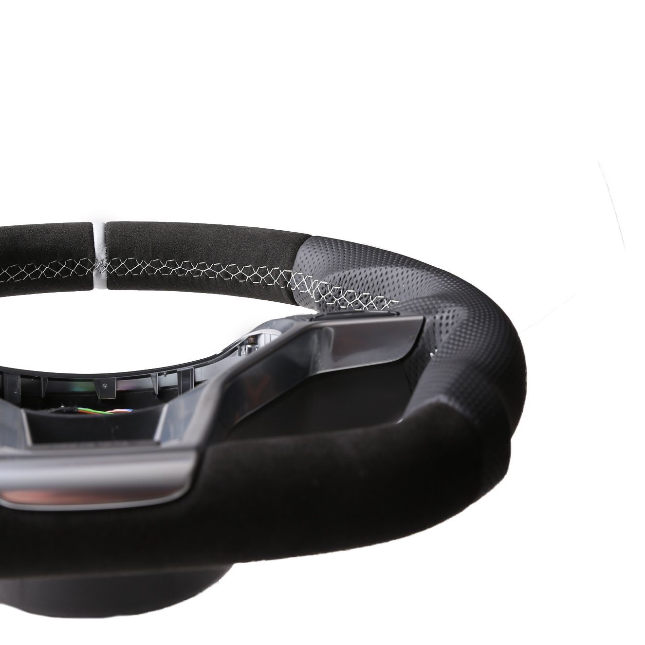 Abgeflachtes Tuninglenkrad mit ergonomischen Griffen für maximale Kontrolle. Griffumfang dicker als das Original Lenkrad