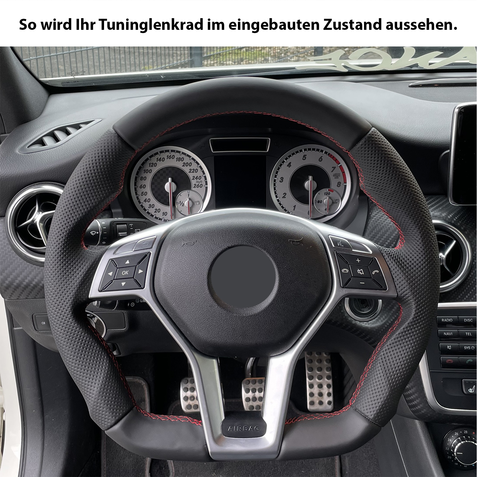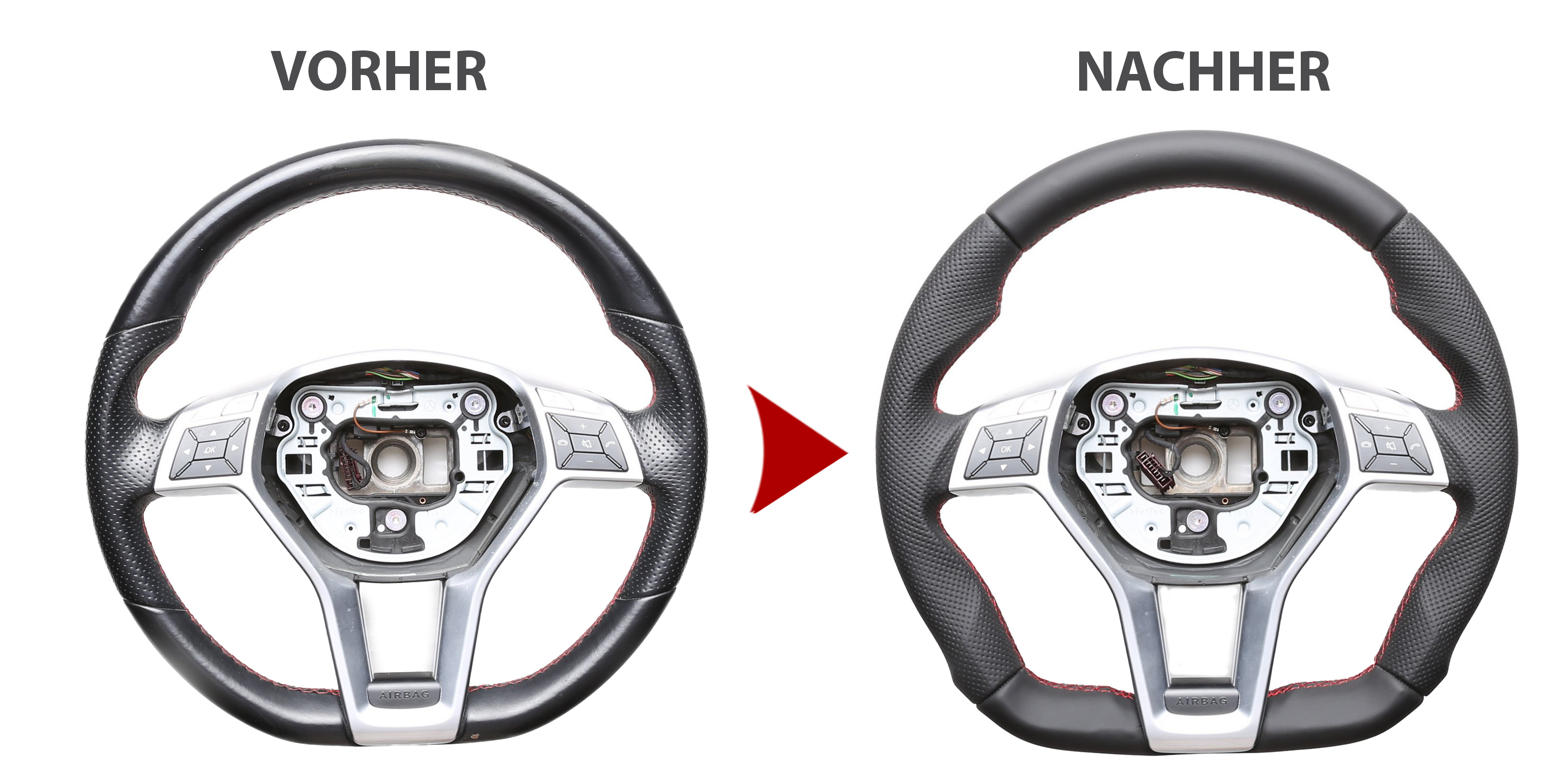 Produktinformationen "Mercedes Lenkrad B E SLK Klasse W246 W212 R172 Abgeflacht Kombibezug Naht rot"