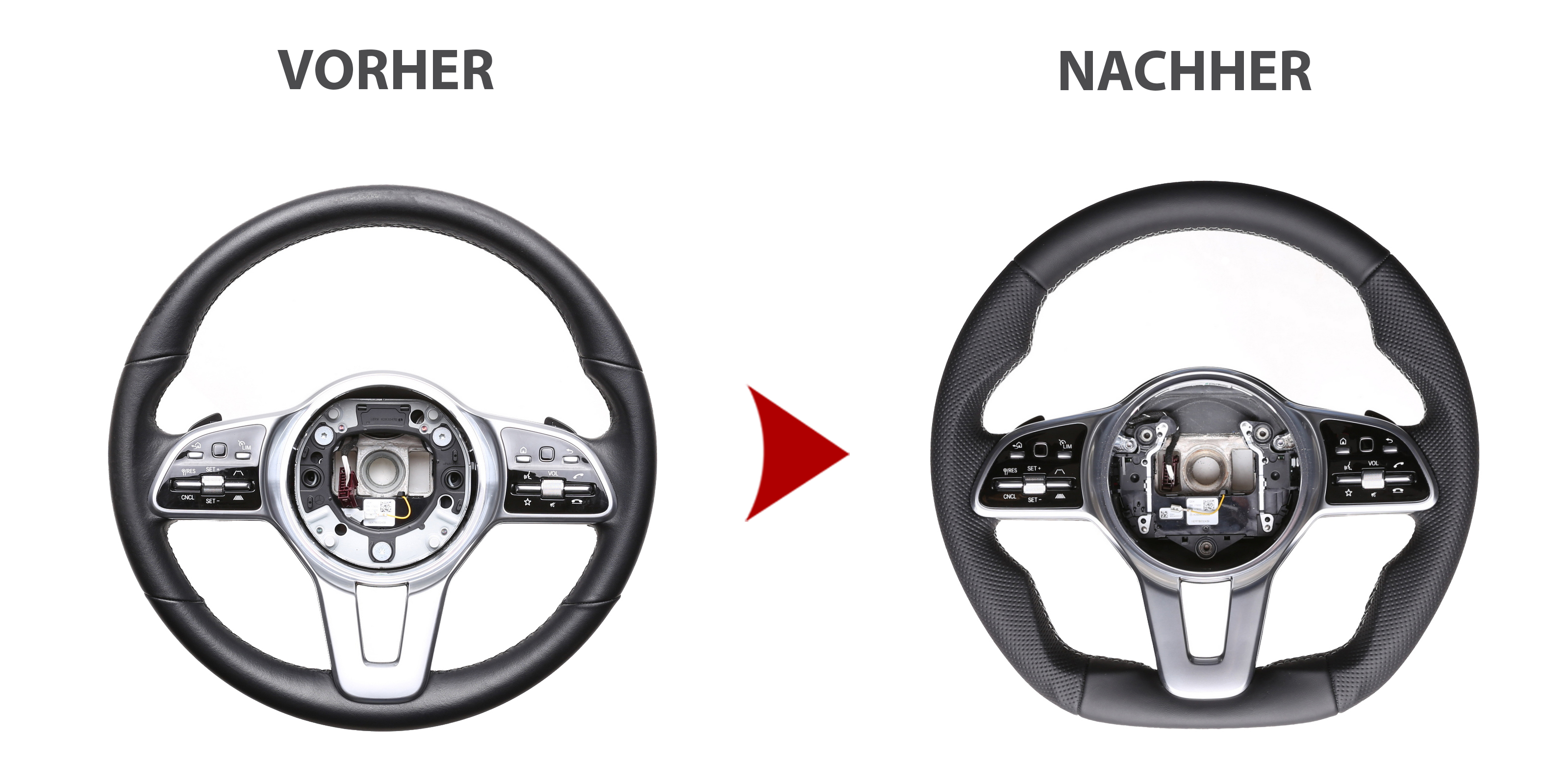 Der Austausch erfolgt ausschließlich gegen ein baugleiches Lenkradmodell. Alle Anbauteile wie Airbag, Multifunktionstasten, Blenden, Schaltwippen oder gar ein Spurhalteassistent übernehmen Sie problemlos von Ihrem Lenkrad. Diese sind nicht im Lieferumfang enthalten.
