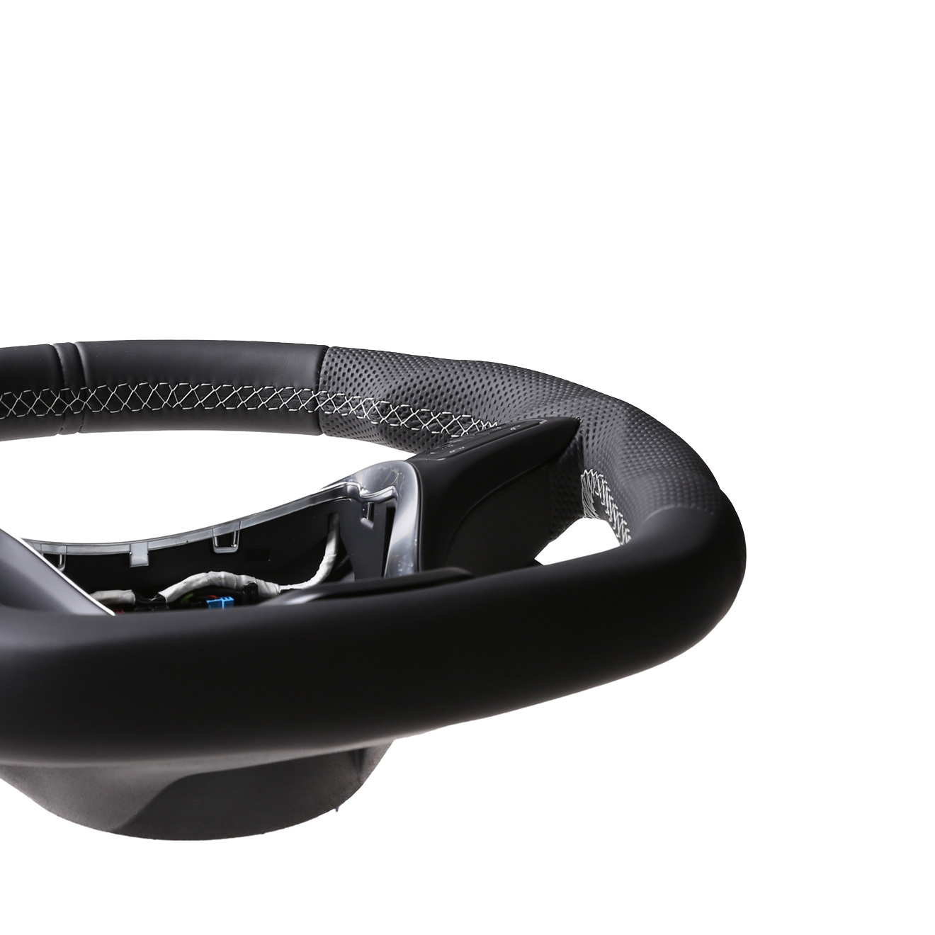 Abgeflachtes Tuninglenkrad mit ergonomischen Griffen für maximale Kontrolle. Griffumfang dicker als das Original Lenkrad