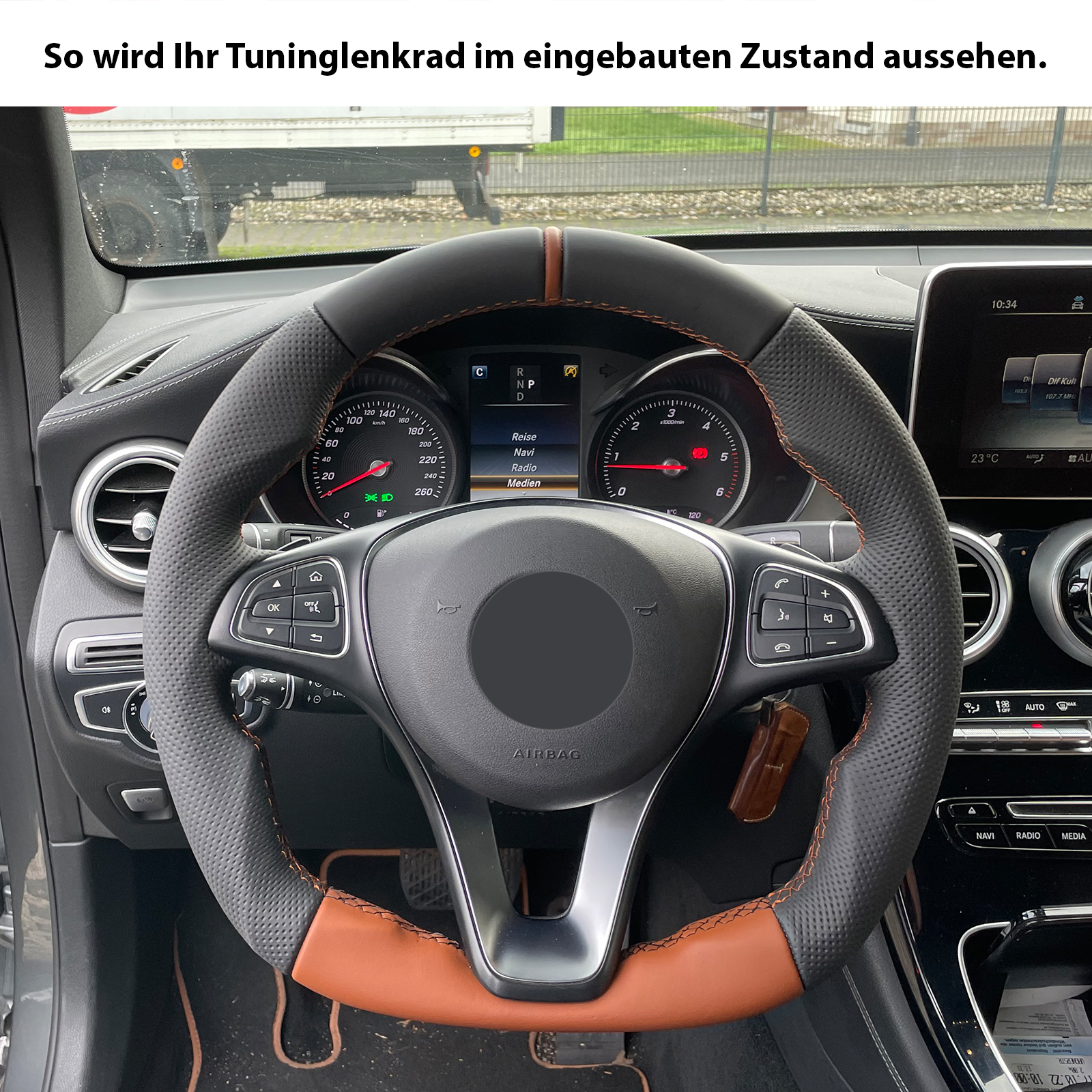 Produktinformationen "Mercedes Lenkrad C E GLA GL W205 W213 X156 X166 Abgeflacht NEU Bicolor 12 Uhr Markierung braun"