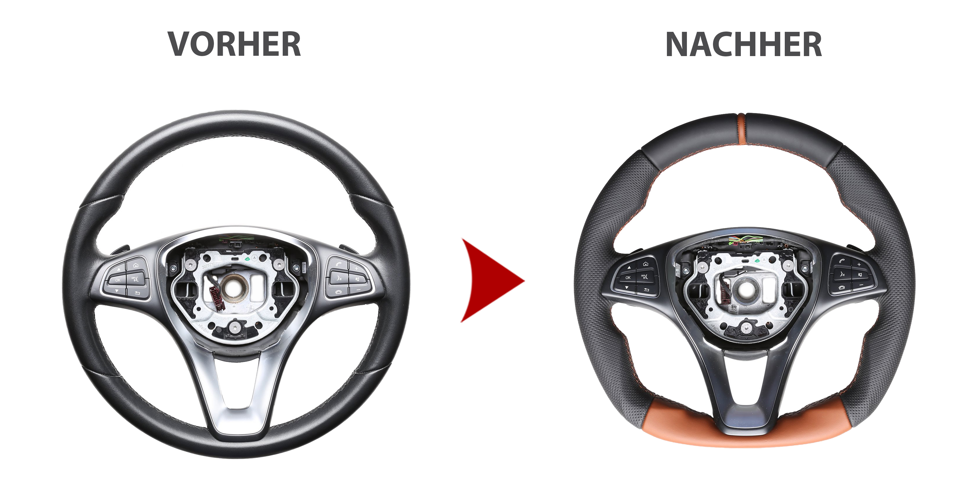 Mercedes Lenkrad C E GLA GL W205 W213 X156 X166 Abgeflacht NEU Bicolor 12 Uhr Markierung braun