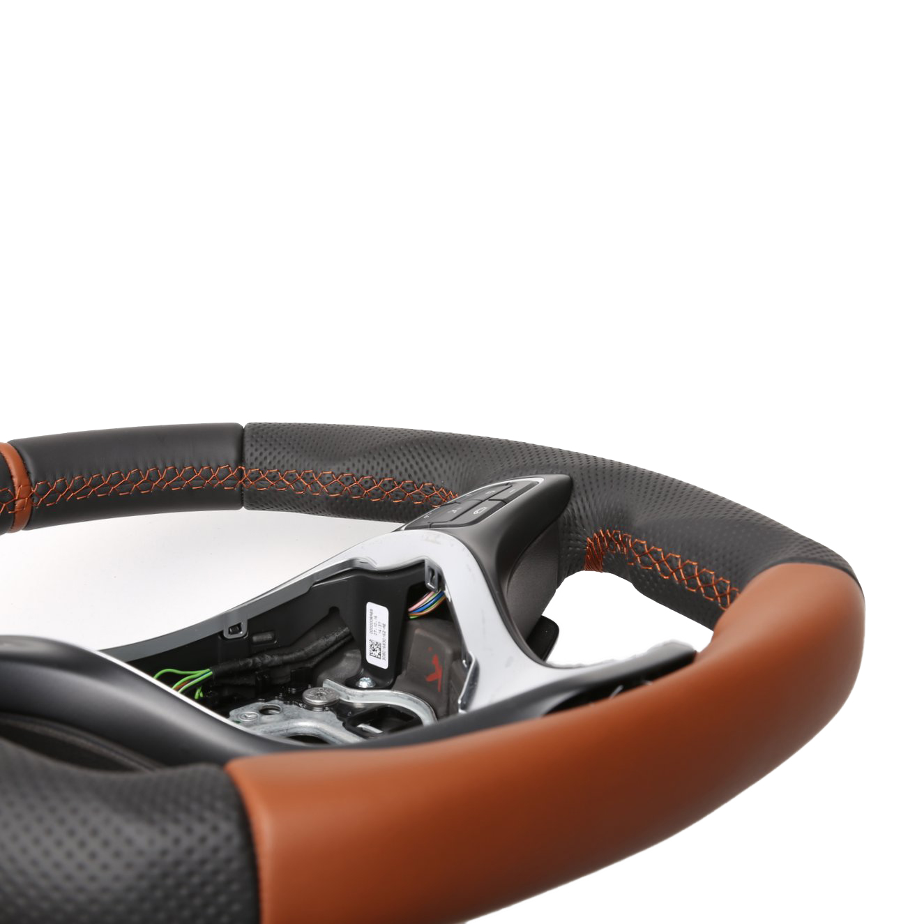 Originalfarbe schwarz, ein Bicolorbezug braun aus Mercedes Nappa und perforiertem Leder, 12 Uhr Markierung braun, Naht braun