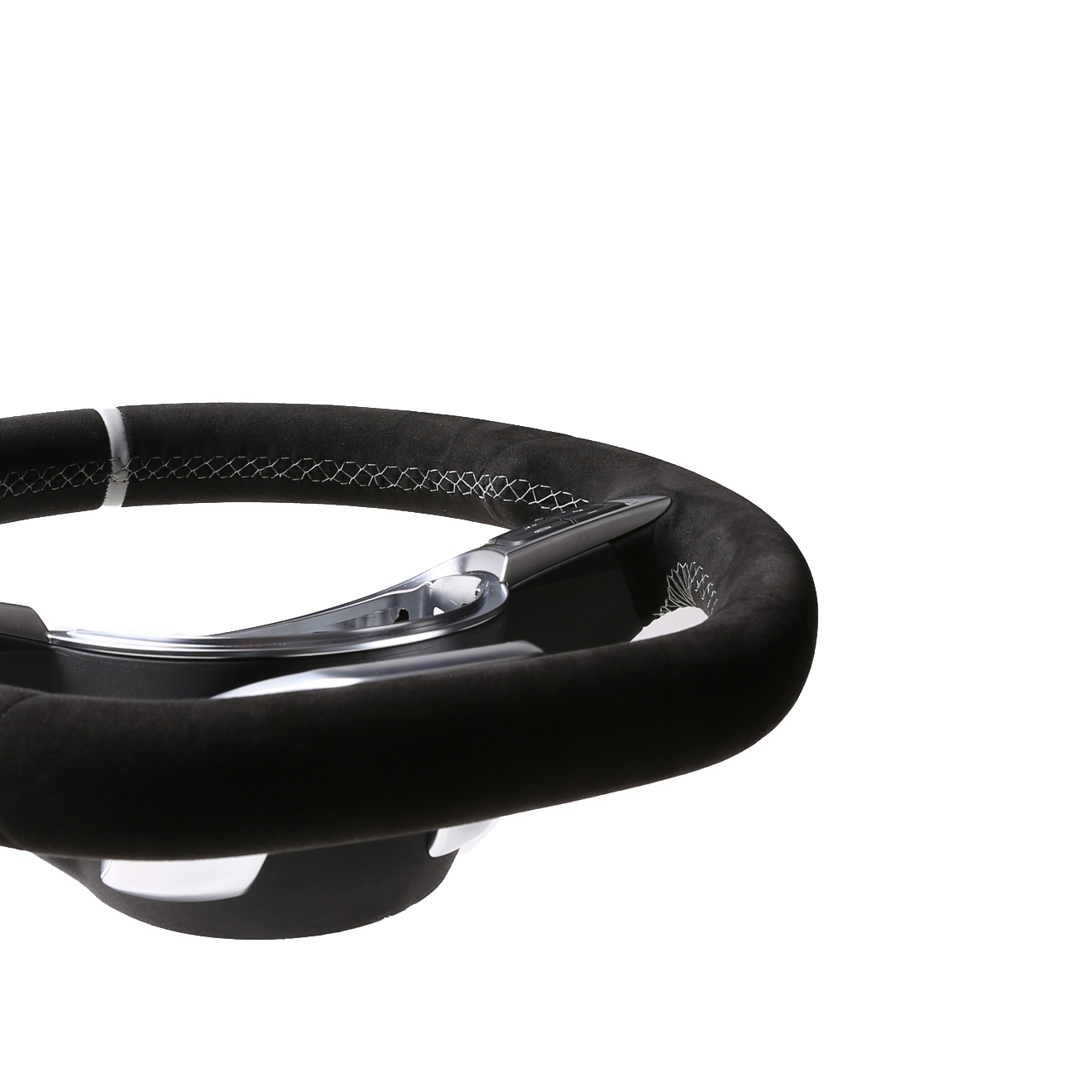 Originalfarbe schwarz, ein Bezug aus Alcantara Leder, 12 Uhr Markierung silber, Naht silber