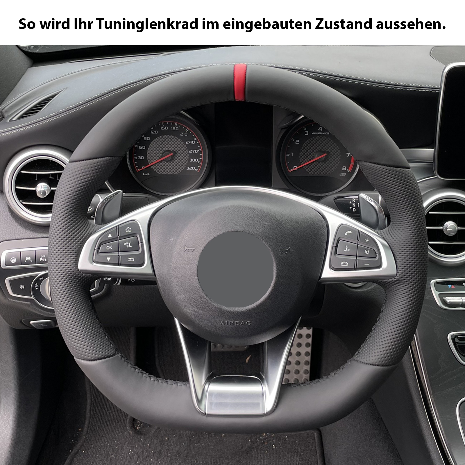 Produktinformationen "Mercedes Lenkrad C E GLE SL Klasse W205 W213 W292 R231 Kombibezug 12 Uhr Markierung Naht schwarz"