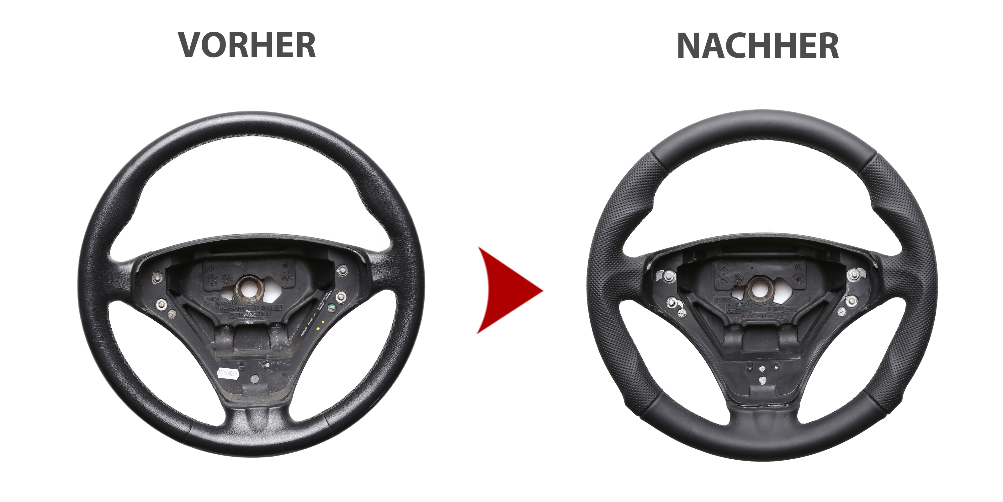 Des Weiteren bieten wir auch den Neubezug Ihres Lenkrades nach Ihren individuellen Vorstellungen bei uns vor Ort an. Sollte es Ihr Lenkradmodell ausnahmsweise nicht in unserem Sortiment geben, dann können wir Ihnen Ihr Lenkrad ausbauen, innerhalb von 4-5 Stunden den Wunschbezug anfertigen und anschließend können Sie wieder nach fachgerechtem Einbau durch uns ohne lange Versandwartezeiten und teure Werkstattbesuche mit Ihrem neu bezogenen Lederlenkrad nach Hause fahren!