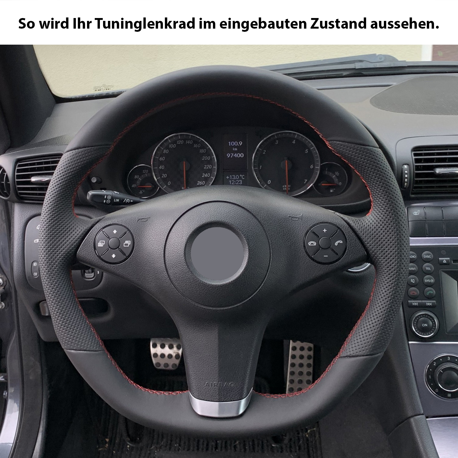Produktinformationen "Mercedes Lenkrad CL 203 C219 CLS R 230 SL K R171 Klassisch Kombibezug Naht rot"