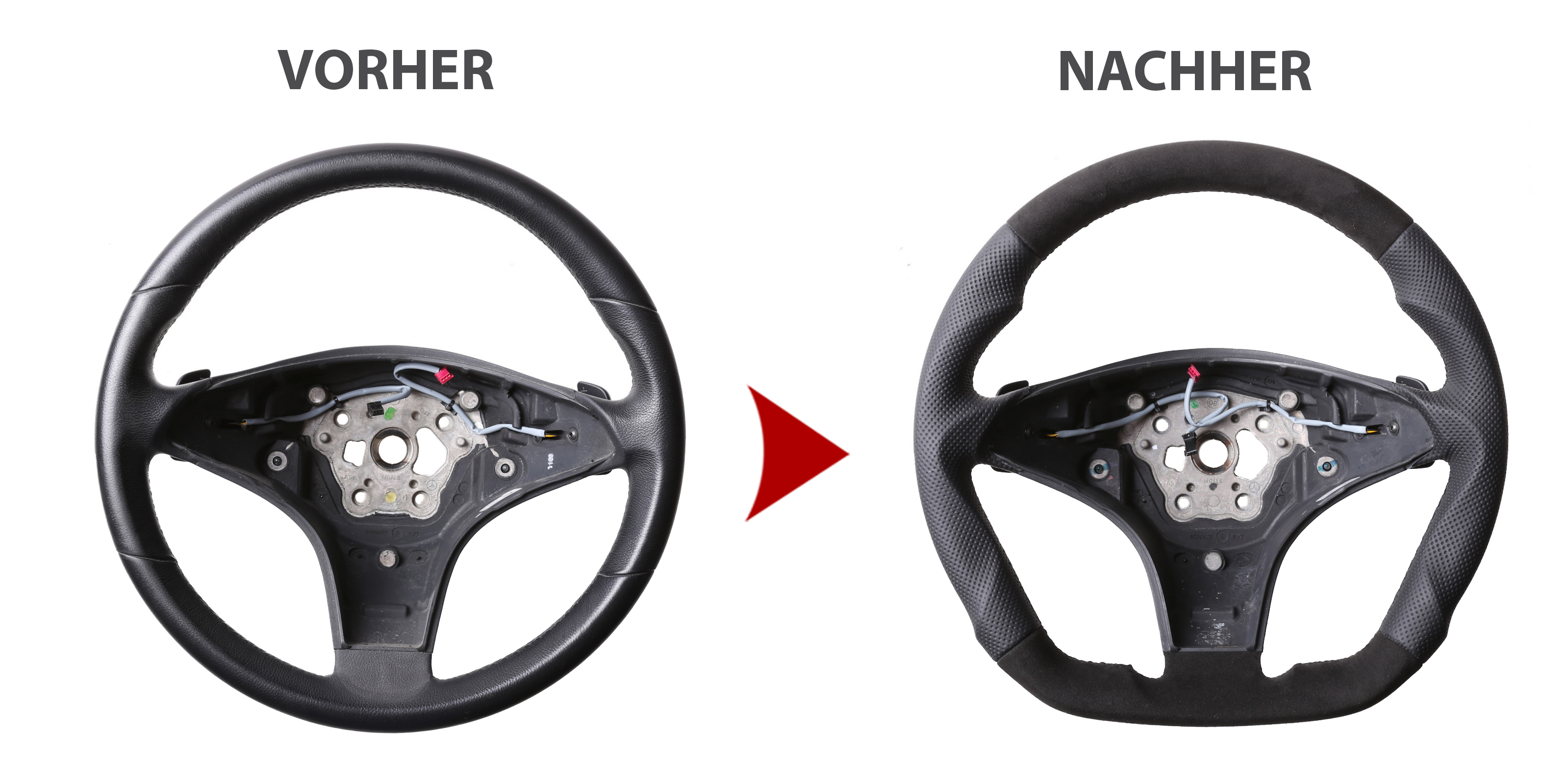 Des Weiteren bieten wir auch den Neubezug Ihres Lenkrades nach Ihren individuellen Vorstellungen bei uns vor Ort an. Sollte es Ihr Lenkradmodell ausnahmsweise nicht in unserem Sortiment geben, dann können wir Ihnen Ihr Lenkrad ausbauen, innerhalb von 4-5 Stunden den Wunschbezug anfertigen und anschließend können Sie wieder nach fachgerechtem Einbau durch uns ohne lange Versandwartezeiten und teure Werkstattbesuche mit Ihrem neu bezogenen Lederlenkrad nach Hause fahren!