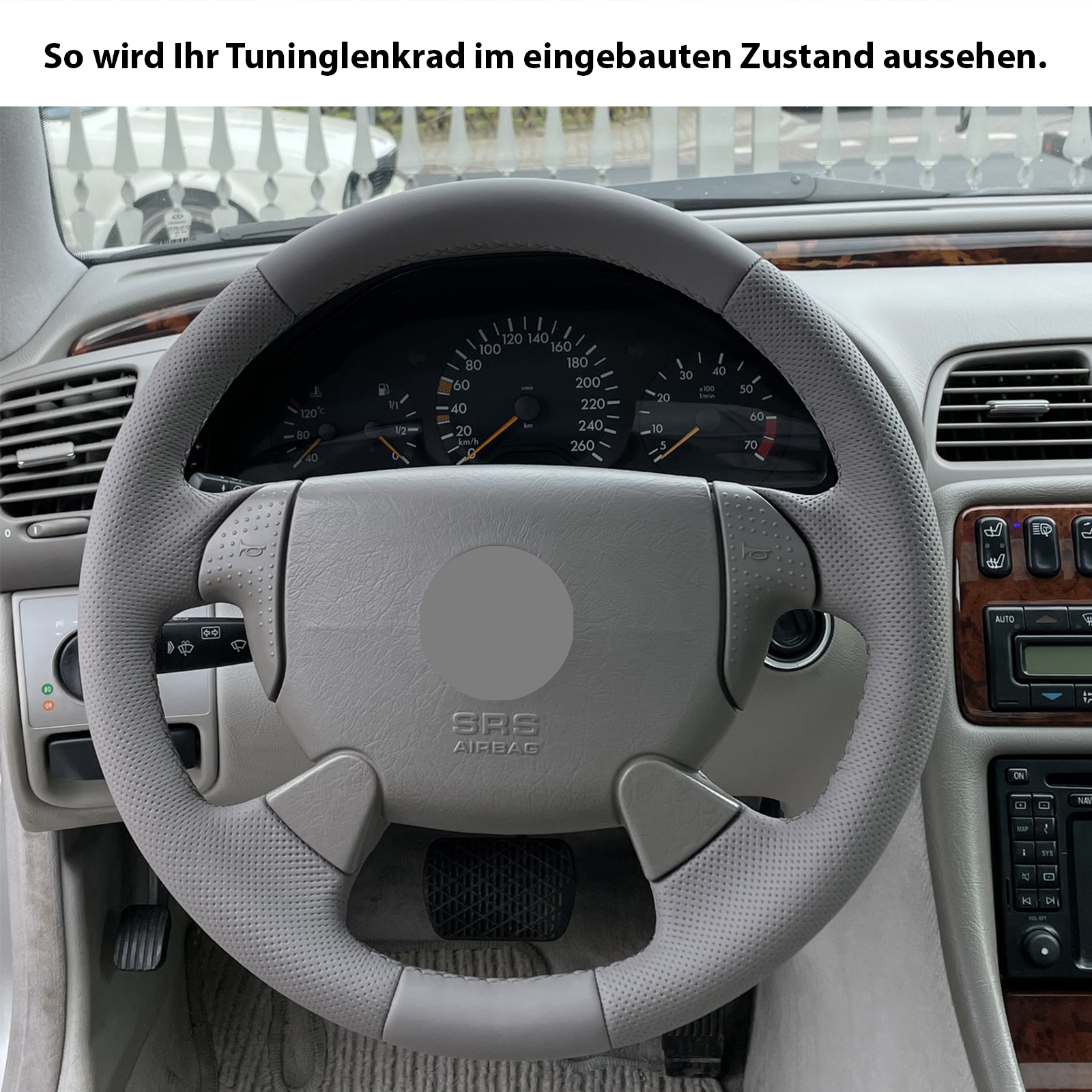 Produktinformationen "Mercedes Lenkrad CLK W208 SLK R170 SL R129 W202 Klassisch Kombibezug Naht grau"