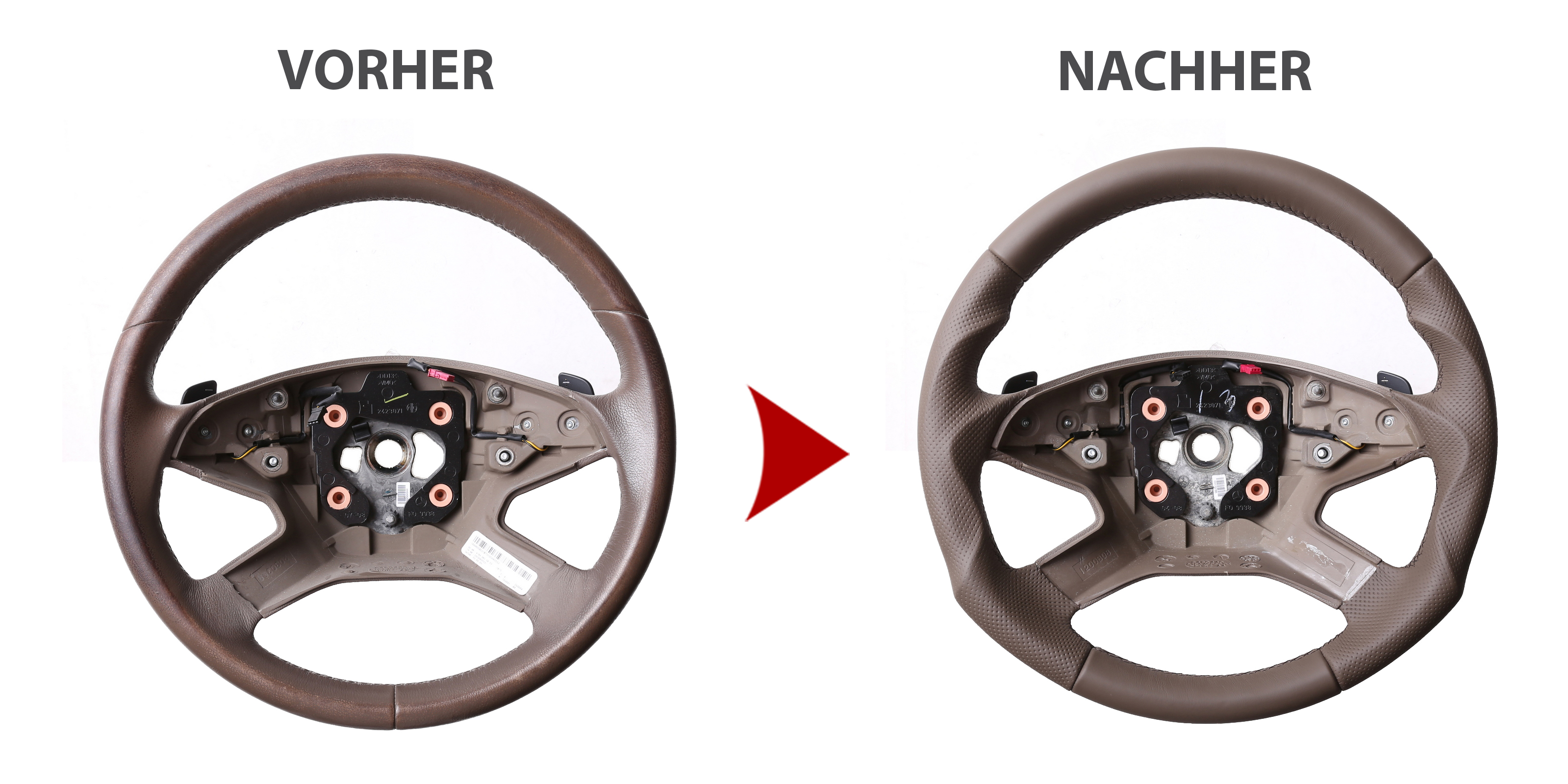 Der Austausch erfolgt ausschließlich gegen ein baugleiches Lenkradmodell. Alle Anbauteile wie Airbag, Multifunktionstasten, Blenden, Schaltwippen oder gar ein Spurhalteassistent übernehmen Sie problemlos von Ihrem Lenkrad. Diese sind nicht im Lieferumfang enthalten