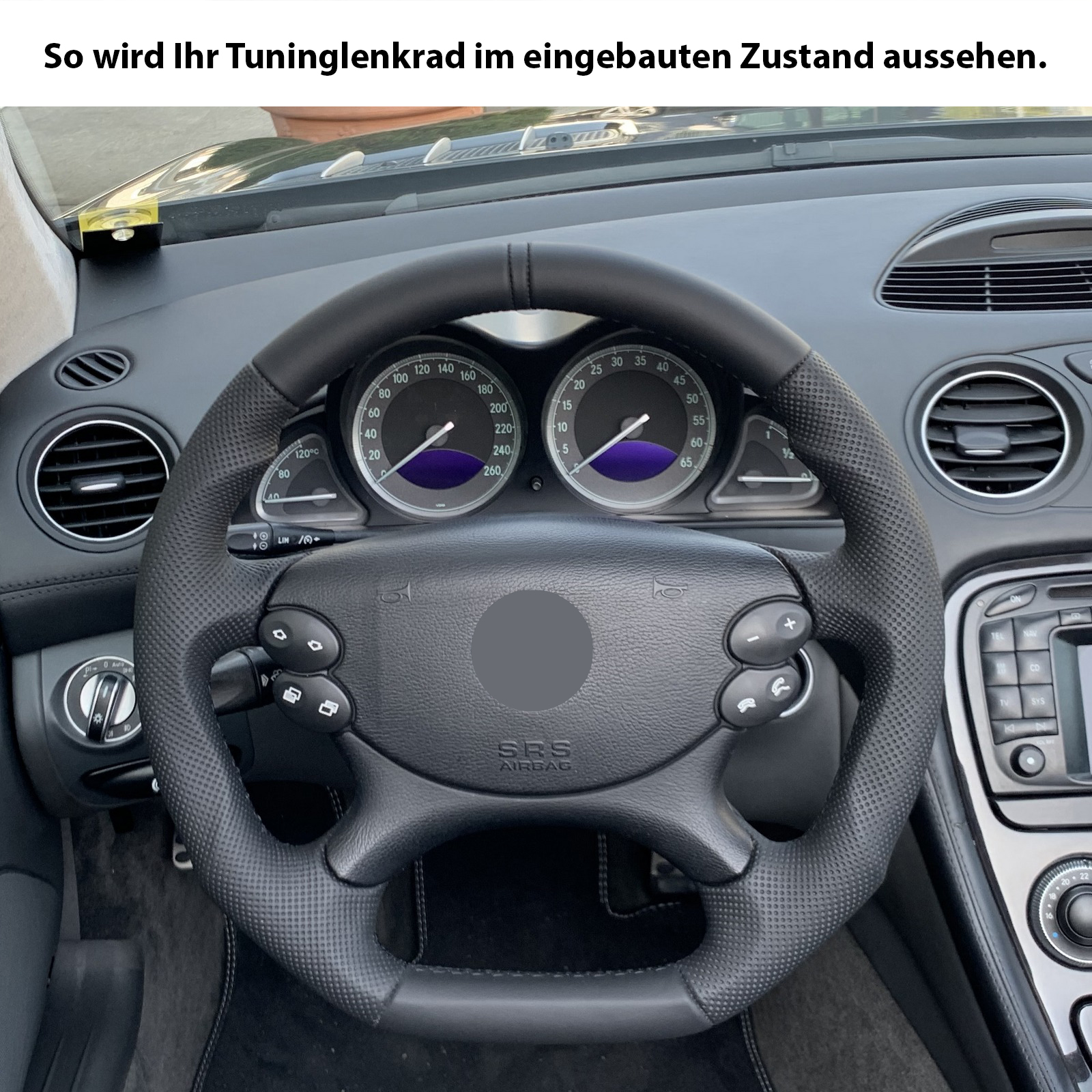 Produktinformationen "Mercedes Lenkrad R230 W209 W211 Abgeflacht Kombibezug 12 Uhr Markierung schwarz Naht schwarz"