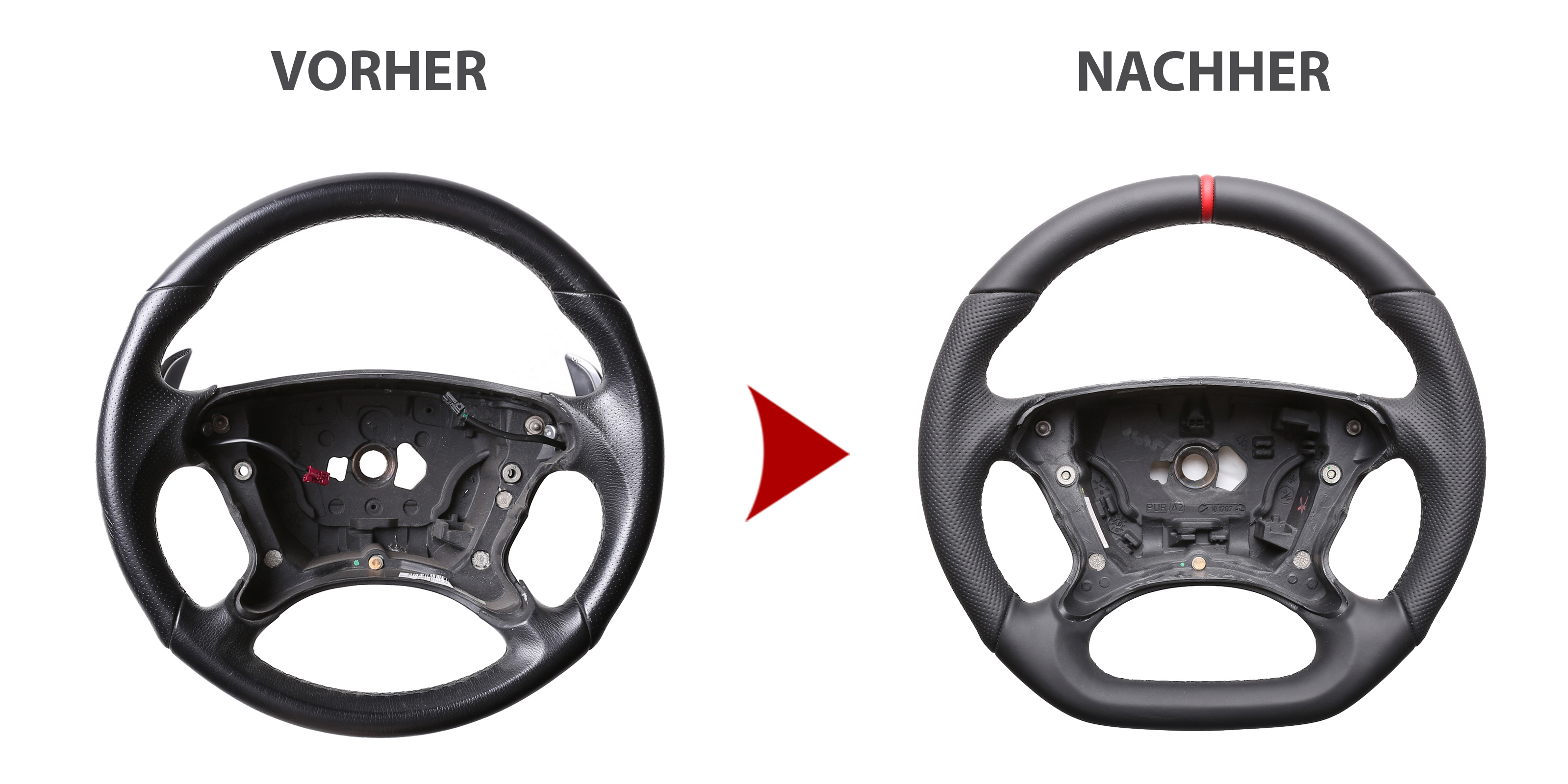 Produktinformationen "Mercedes Lenkrad R230 W209 W211 E G Klasse CLK SL AMG Abgeflacht Kombibezug 12 Uhr Markierung rot"