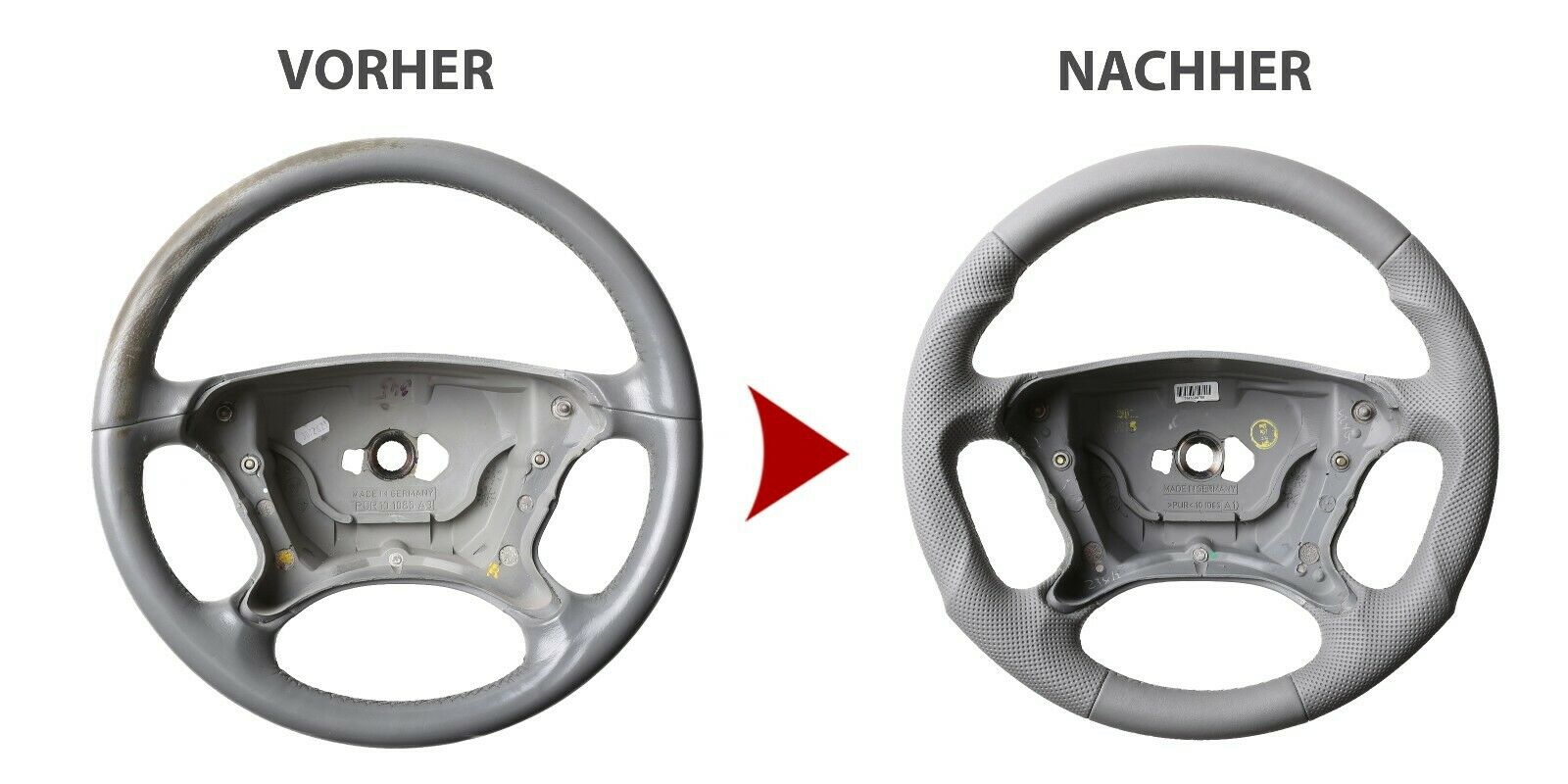 Des Weiteren bieten wir auch den Neubezug Ihres Lenkrades nach Ihren individuellen Vorstellungen bei uns vor Ort an. Sollte es Ihr Lenkradmodell ausnahmsweise nicht in unserem Sortiment geben, dann können wir Ihnen Ihr Lenkrad ausbauen, innerhalb von 4-5 Stunden den Wunschbezug anfertigen und anschließend können Sie wieder nach fachgerechtem Einbau durch uns ohne lange Versandwartezeiten und teure Werkstattbesuche mit Ihrem neu bezogenen Lederlenkrad nach Hause fahren!