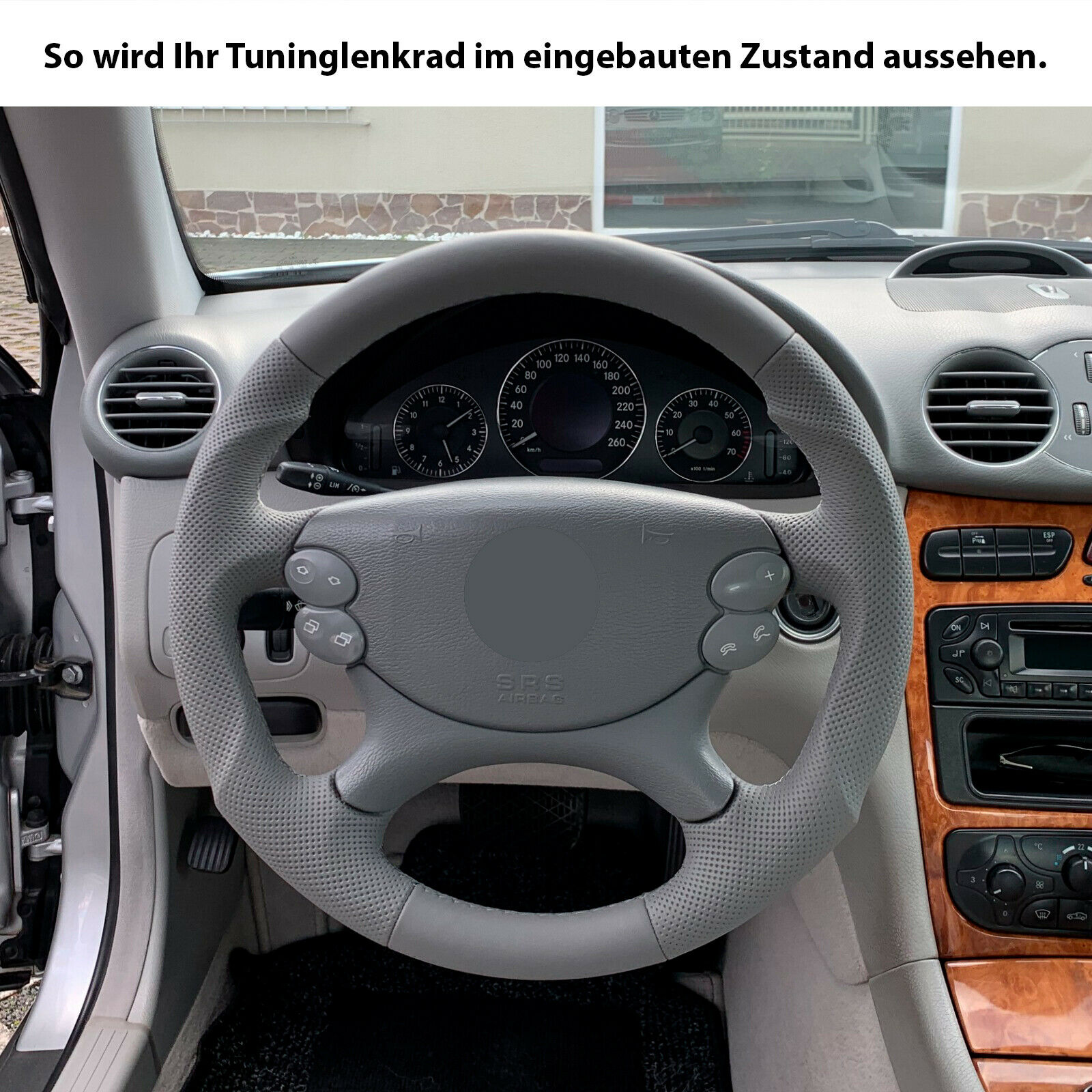 Produktinformationen "Mercedes Lenkrad R230 W209 W211 E Klasse CLK SL grau Tuning Kombibezug Naht grau"