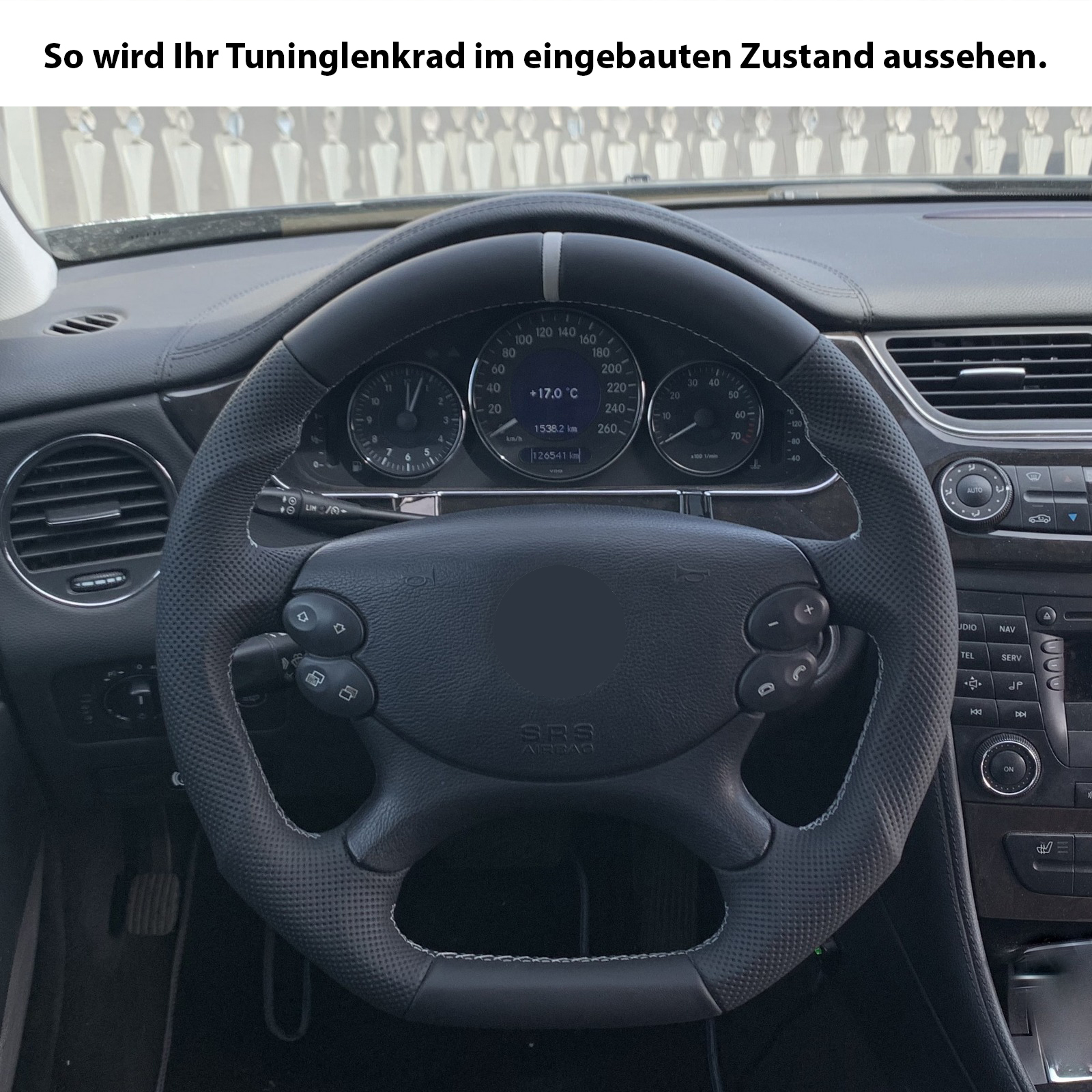 Produktinformationen "Mercedes Lenkrad R230 W209 W211 W463 Abgeflacht Kombibezug 12 Uhr Markierung silber Naht silber"