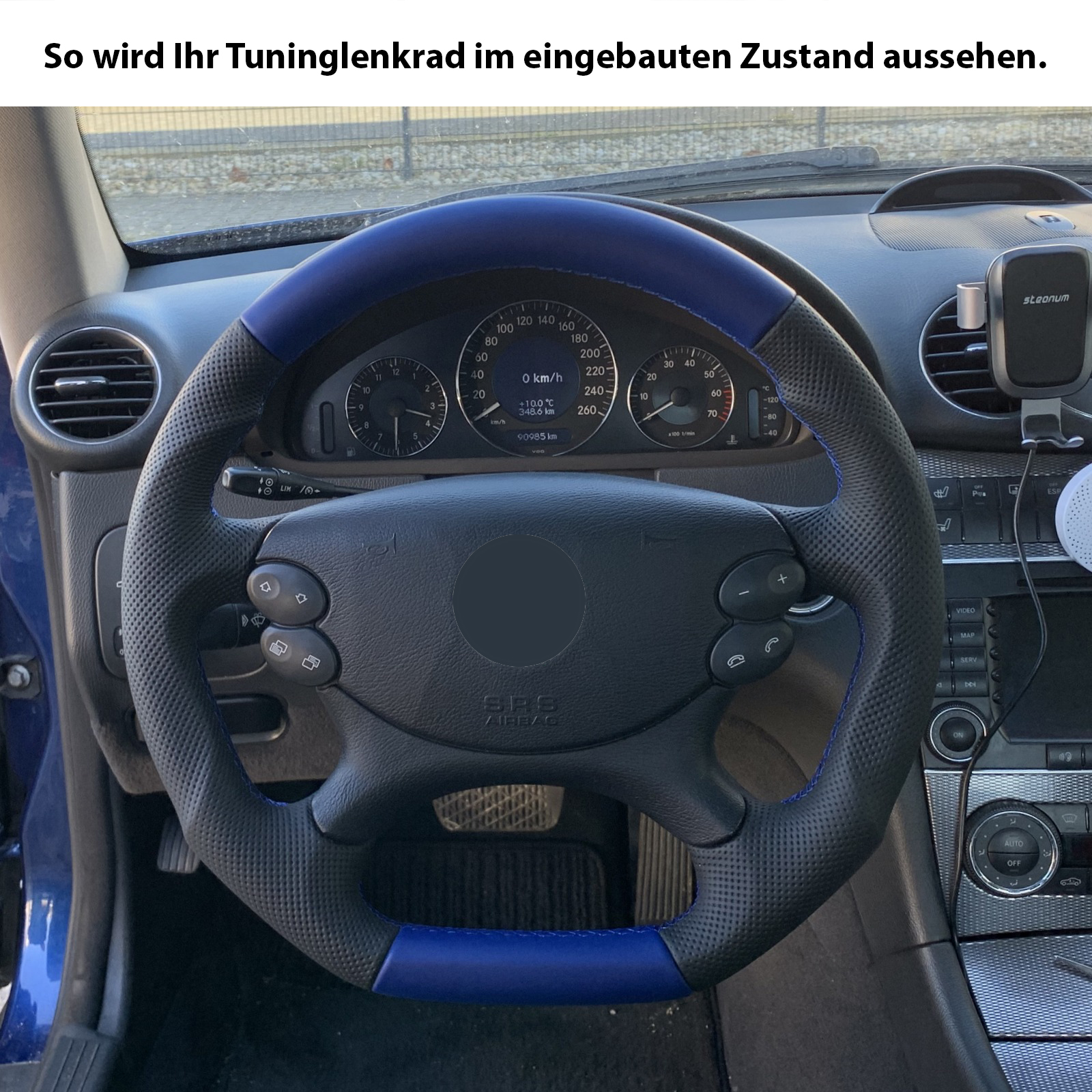 Produktinformationen "Mercedes Lenkrad R230 W209 W211 W463 E G Klasse Abgeflacht Kombibezug Bicolor blau Naht blau"