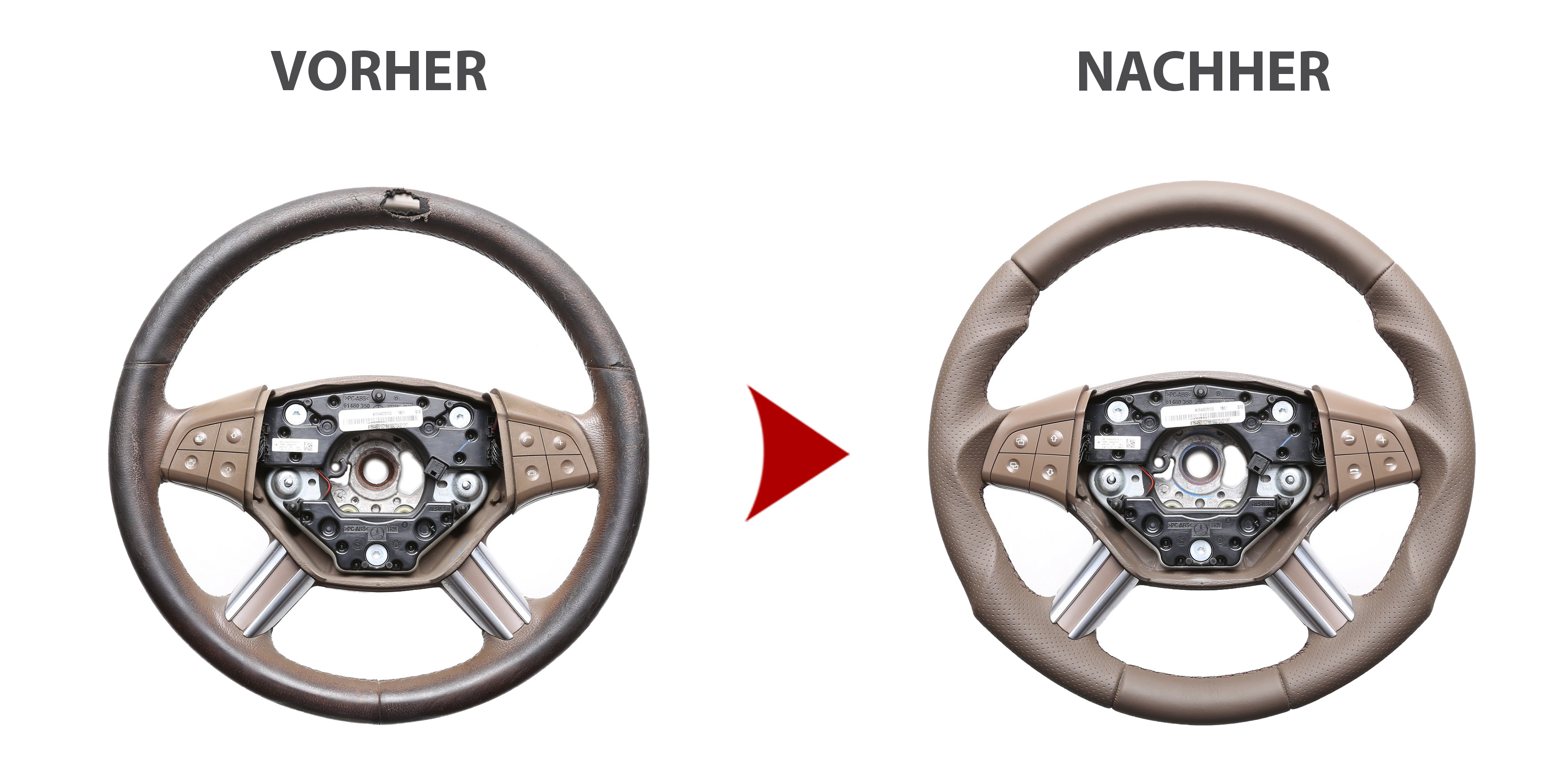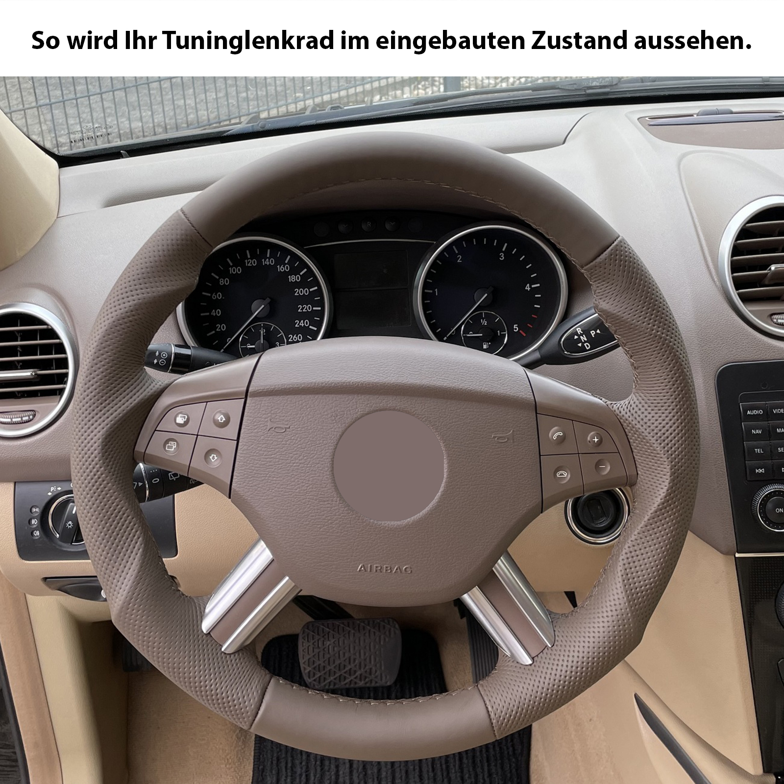 Produktinformationen "Mercedes Lenkrad W164 ML X164 GL W251 R Klasse braun Tuning Kombibezug Naht braun"