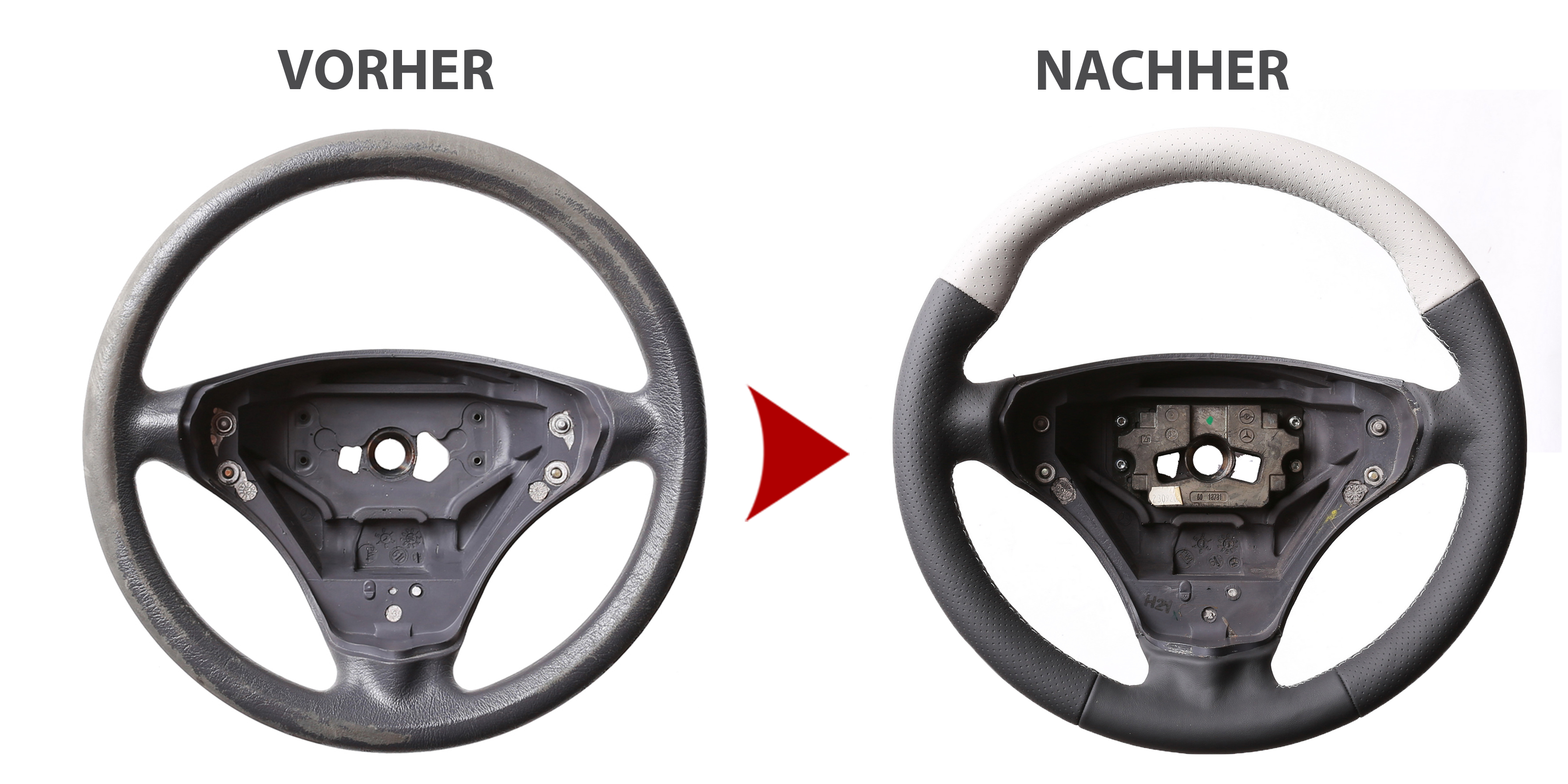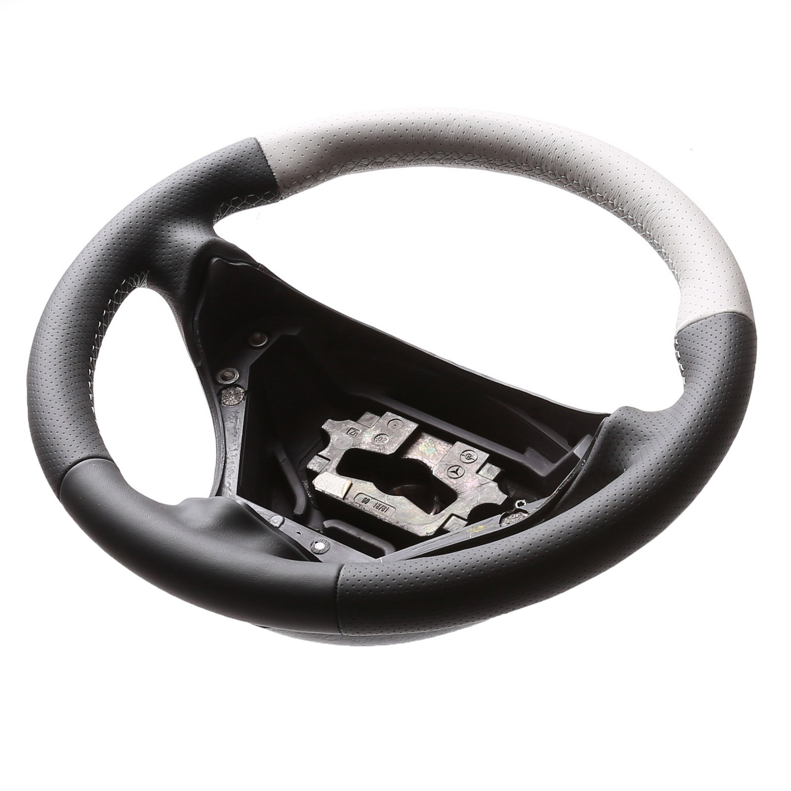 Originalfarbe grau/weiß, aus genarbtes Original Mercedes Leder, Naht weiß