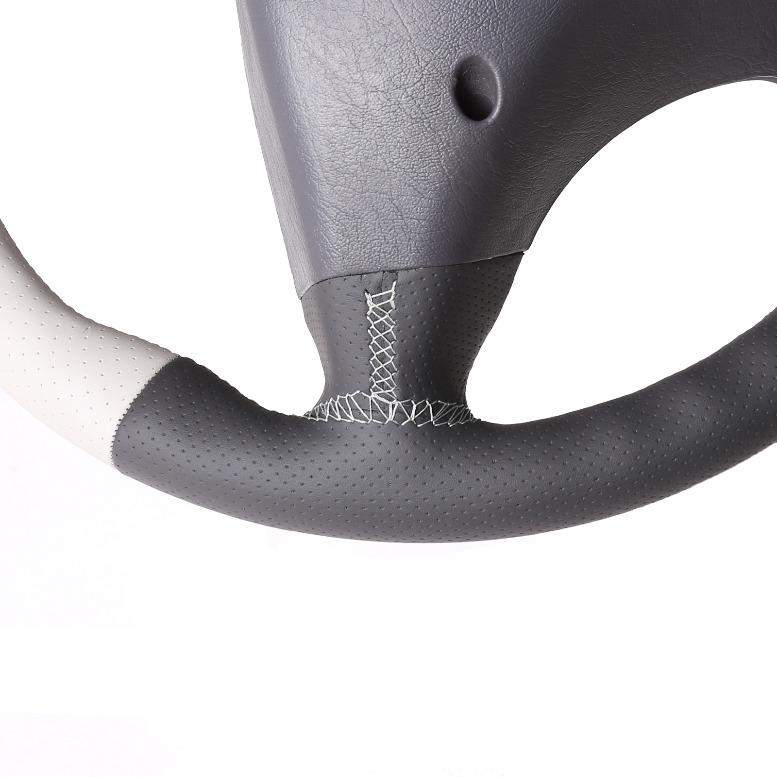 Produktinformationen "Mercedes Lenkrad W168 A Klasse Daumenauflagen Bicolor weiß Kombibezug Naht weiß"
