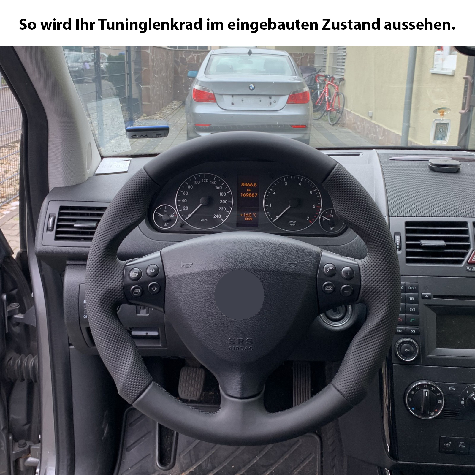 Produktinformationen "Mercedes Lenkrad W169 A Klasse Tuning Kombibezug Naht schwarz"