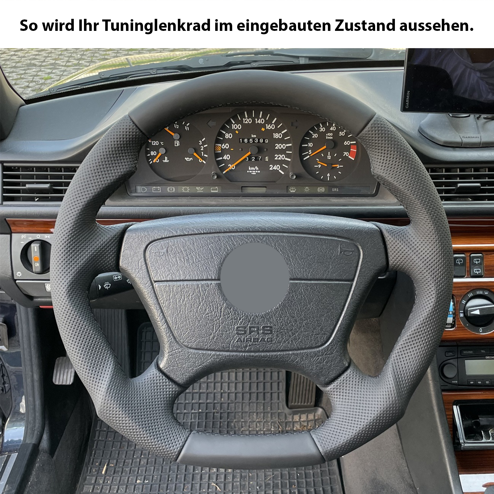 Produktinformationen "Mercedes Lenkrad W202 W124 W210 W140 C E S Klasse Abgeflacht Kombibezug Naht schwarz"